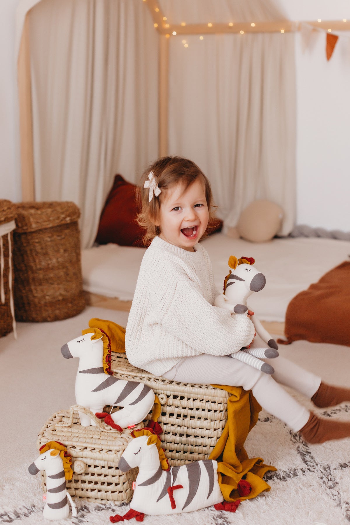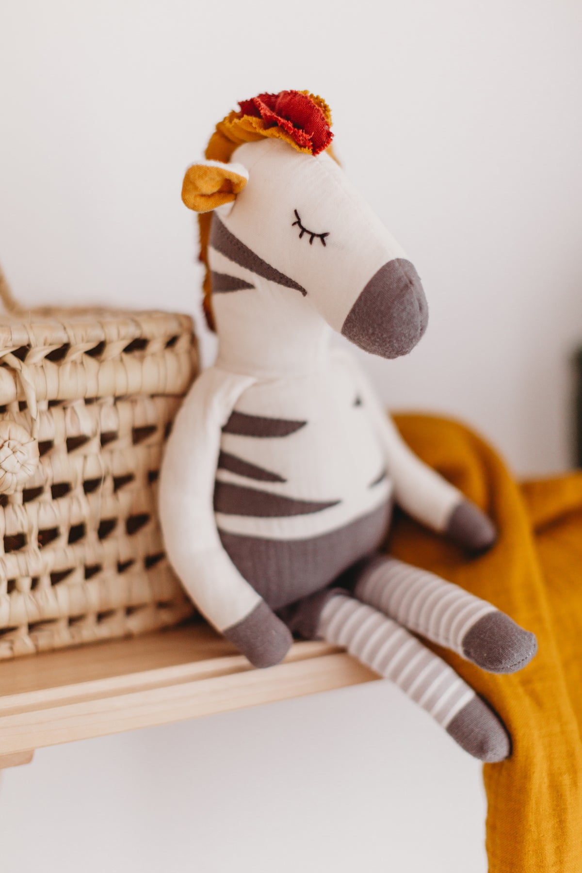 Unsere Puppe im Zebra Design ist ein niedliches Kuscheltier zum Schmusen oder Spielen.