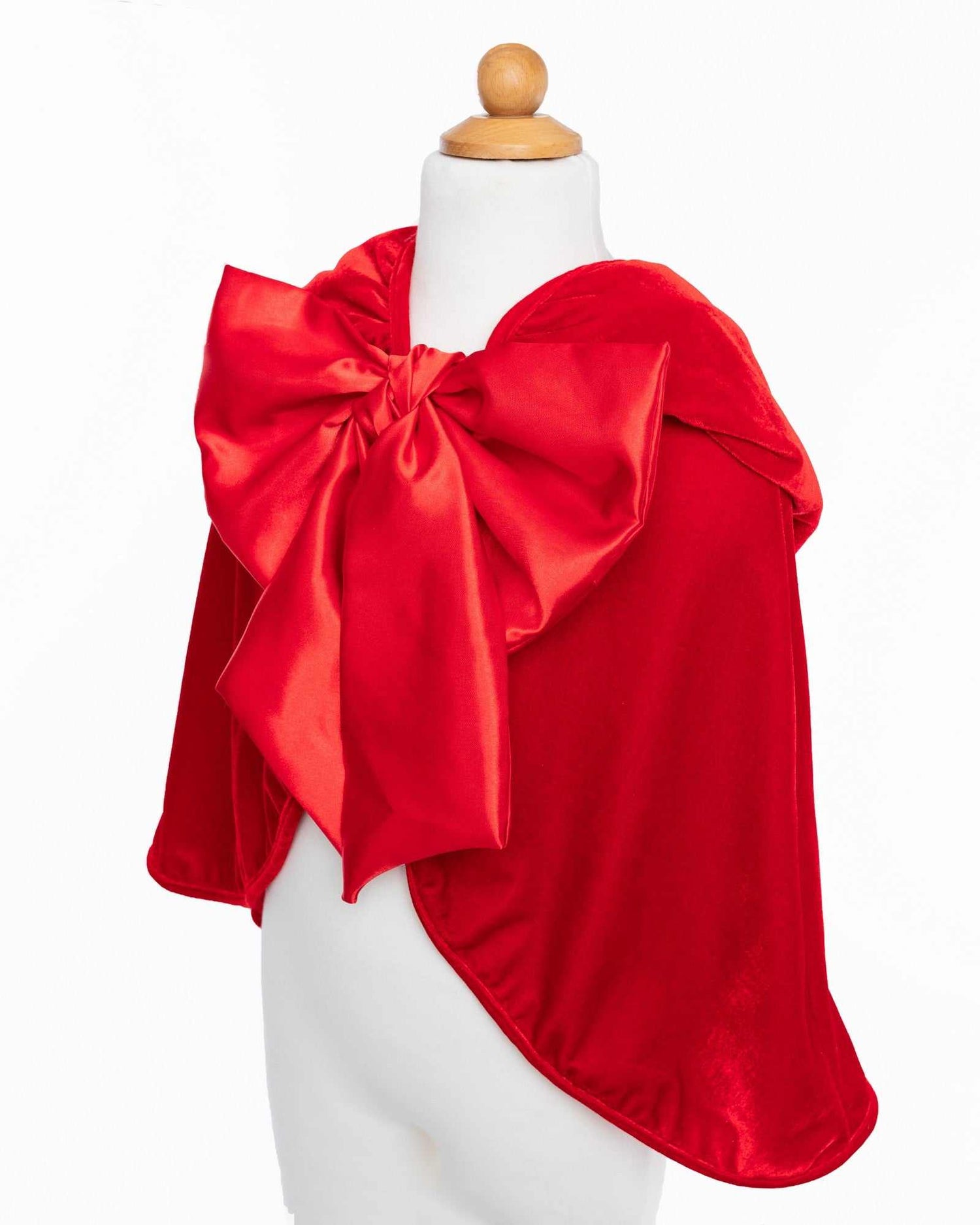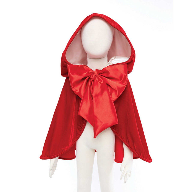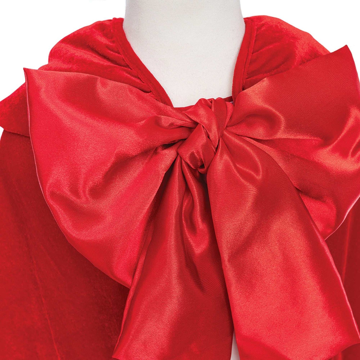 Dieses rote Rotkäppchen Cape ist aus 2-Wege-Stretch-Velours gefertigt und mit cremefarbenen Satin gefüttert.