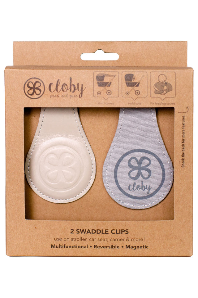Diese wunderschönen Swaddleclips von Cloby sind ein wahrer Hingucker an deinem Kinderwagen! Diese Magnetclips sind im Alltag mit Baby ein treuer Begleiter. Der Clip enthält 2 starke Magnete und ist auf der einen Seite mit hochwertigem Leder und auf der anderen Seite mit robustem Segeltuch überzogen. Praktisch und dabei besonders schön anzusehen! Die Clips befestigen Spielzeug, Decken oder kleine Taschen an eurem Buggy/Kinderwagen oder Autositz. Die Einsatzmöglichkeiten der Clips sind nahezu endlos.