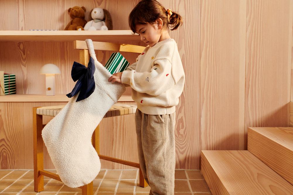 Dieser niedliche Weihnachtsstrumpf von Liewood, bringt noch einen Hauch mehr Liebe in ihr Zuhause. Das Geräusch von kleinen Füßen, die sich beeilen, um zu sehen, ob die Elfen ein Geschenk für sie in ihrem Weihnachtsstrumpf hinterlassen haben. Eine Erinnerung, die Sie jedes Mal, wenn Sie den weichen Stapel Weihnachtsstrümpfe hervorholen, in Erinnerung behalten werden. Eine zeitlose und unvergessliche Weihnachtsdekoration.