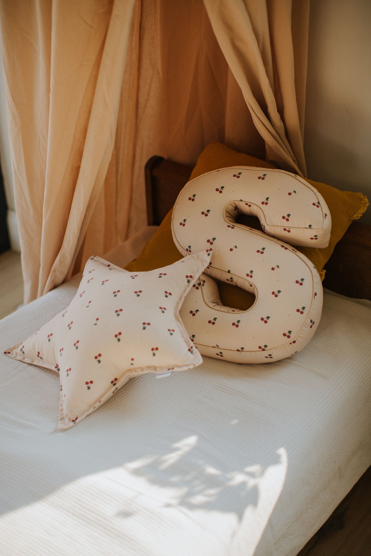 Die süßen Kirsch-Baumwollkissen von Betty's Home sind überall im Haus ein zauberhafter Hingucker. Dekoriere dein Wohnzimmer, Schlafzimmer oder Kinderzimmer mit den Anfangsbuchstaben deiner Liebsten. Auch zum Verschenken eignen sich die Kissen perfekt. Mit den Anfangsbuchstaben der Familienmitglieder entsteht eine individuelle Deko, mit der die Kinder außerdem wunderbar kuscheln und spielen können. Die Baumwollkissen mit dem zuckersüßen Kirschprint sorgen garantiert für gute Laune,  haben keinen Reißverschluss oder Federn und sind bei 30 Grad waschbar. Auch als persönliches Geschenk zur Geburt sind die Kissen wunderschön! Höhe: 40 cm +/- 2 cm Breite: 35 cm +/- 2 cm Dicke: 12 cm Modell: LET-I-CO-CHERRY-VAN Das Produkt kann bei einer Temperatur von 30C gewaschen werden.