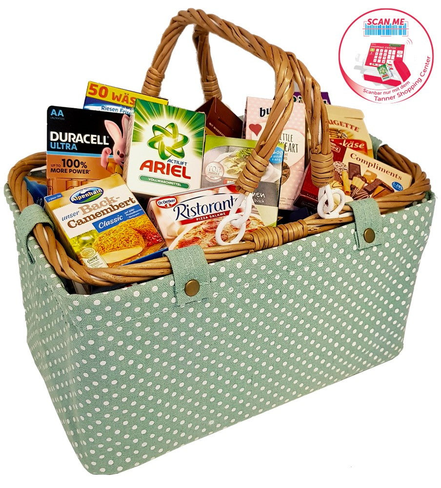 In diesem Stoffkorb von Tanner in mint haben alle mitgelieferten Miniaturen ausreichend Platz. Mit dem robusten Korb aus dem Mischgewebe Baumwolle/Polyester und dem stabilem Tragegriff aus Weide kann die Einkaufstour im Kinderzimmer losgehen. Der Korb kann einfach zusammengeklappt und im Kinderzimmer verstaut werden. Die Miniaturen in dem Korb sind sortiert und beim Kauf nicht frei wählbar. Da machen der Verkauf und Einkauf gleich noch mehr Spaß! Dieser Artikel ist mit der Scannerkasse von Tanner kompatibel, die du auch bei uns im Onlineshop findest.