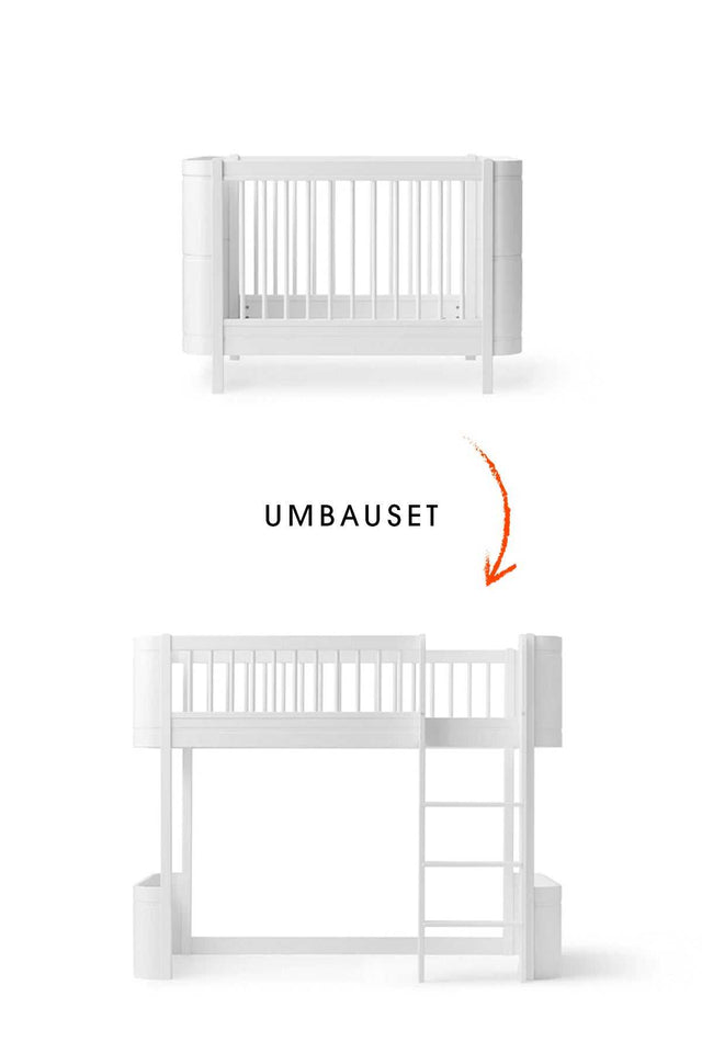 Mit diesem Umbauset von Oliver Furniture können Sie Ihr vorhandenes Mini+ Babybett inkl. Umbauset Juniorbett zum halbhohen Hochbett umbauen.