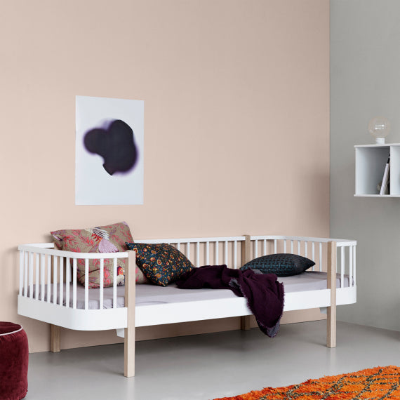 Das Wood Bettsofa von Oliver Furniture kombiniert den wunderbaren Stil der 50er Jahre, mit warmer nordischer Eiche und schlichten Linien. Mit vielen Decken und Kissen dekoriert, kann das Bett tagsüber problemlos als gemütliches Sofa genutzt werden. Es ist eine perfekte Lösung für ein Gäste- oder Teenagerzimmer.