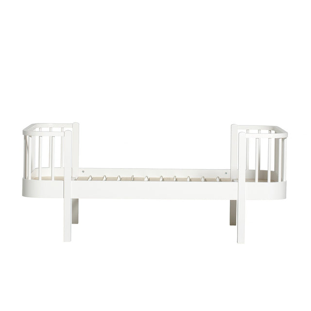 Das Wood Juniorbett mit einer Länge von 160 cm, abgerundeten Ecken und Elementen aus warmer, nordischer Eiche ist der perfekte Ort, um für das kleine Kind eine sichere und gemütliche Atmosphäre zu schaffen.