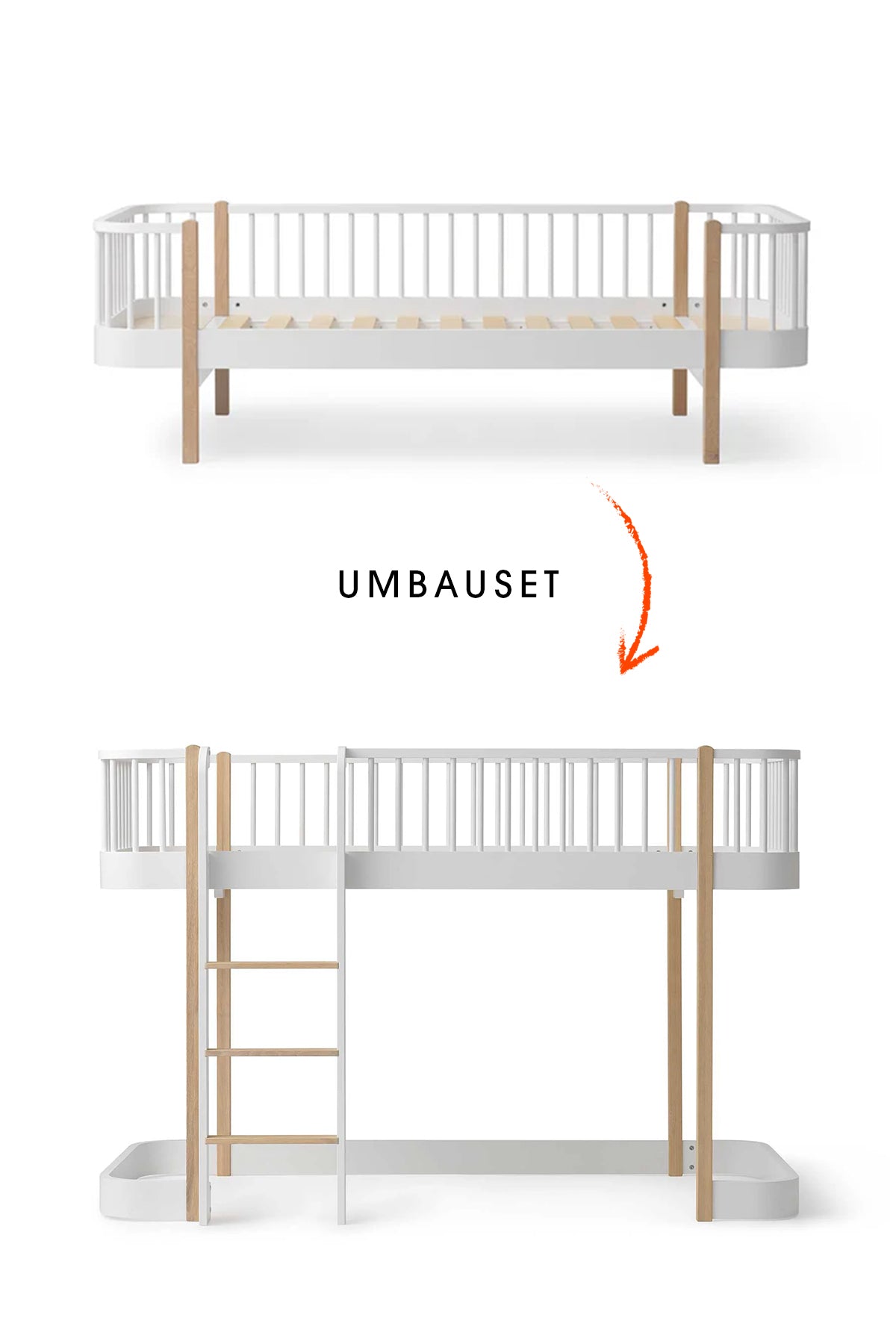 Wood Umbau-Set vom Original Bettsofa zum halbhohen Hochbett 138 cm, weiß/eiche