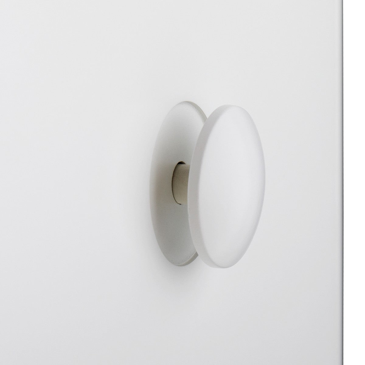 Die abgerundeten Kanten, sowohl nach außen als auch zur Wand hin, verleihen der Kommode eine optisch leichte Statur.