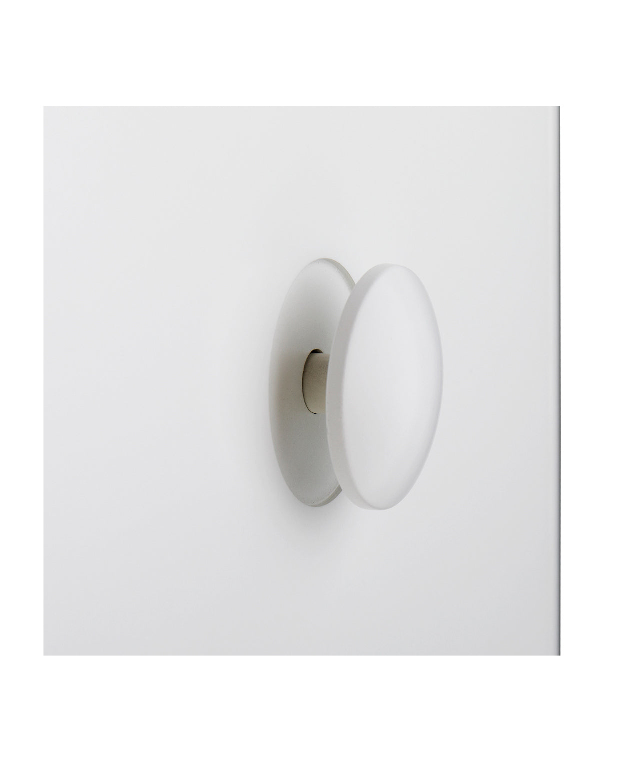Die visuelle Leichtigkeit der Wood Wickelkommode wird durch ihre runden Formen erzeugt; sie weisen sowohl in den Raum also auch zur Wand hin. Die sechs soliden, großen Schubladen laufen auf qualitativ hochwertigen Schienen. Eine spezielle Softlock-Funktion dämpft das Schließen der Schubladen, so dass kleine Finger nicht eingeklemmt werden. Das Design der Seiten ist mit runden Haken gestaltet, die man für dekorative Details nutzen kann oder um praktische Dinge schnell griffbereit zu haben.