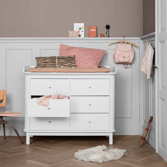 Wenn die Wickelplatten nicht mehr benötigt wird, kann man sie leicht abmontieren und hat eine zeitlos schöne Kommode – ganz nach Oliver Furnitures grundlegender Philosophie, Möbel hoher Qualität herzustellen, die einen lebenslang begleiten.