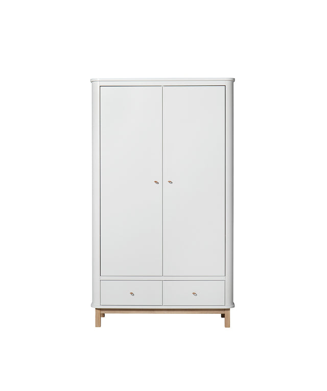 Wood Kleiderschrank 2-türig weiß/ Eiche