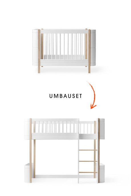 Wood Umbau-Set vom Mini+ Babybett inkl. Umbau-Set Juniorbett zum halbhohen Hochbett weiß/ eiche