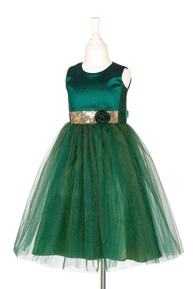 Das schicke grüngoldene Kleid Luisa von Souza Kids ist ein echter Hingucker mit außergewöhnlicher Farbe.
