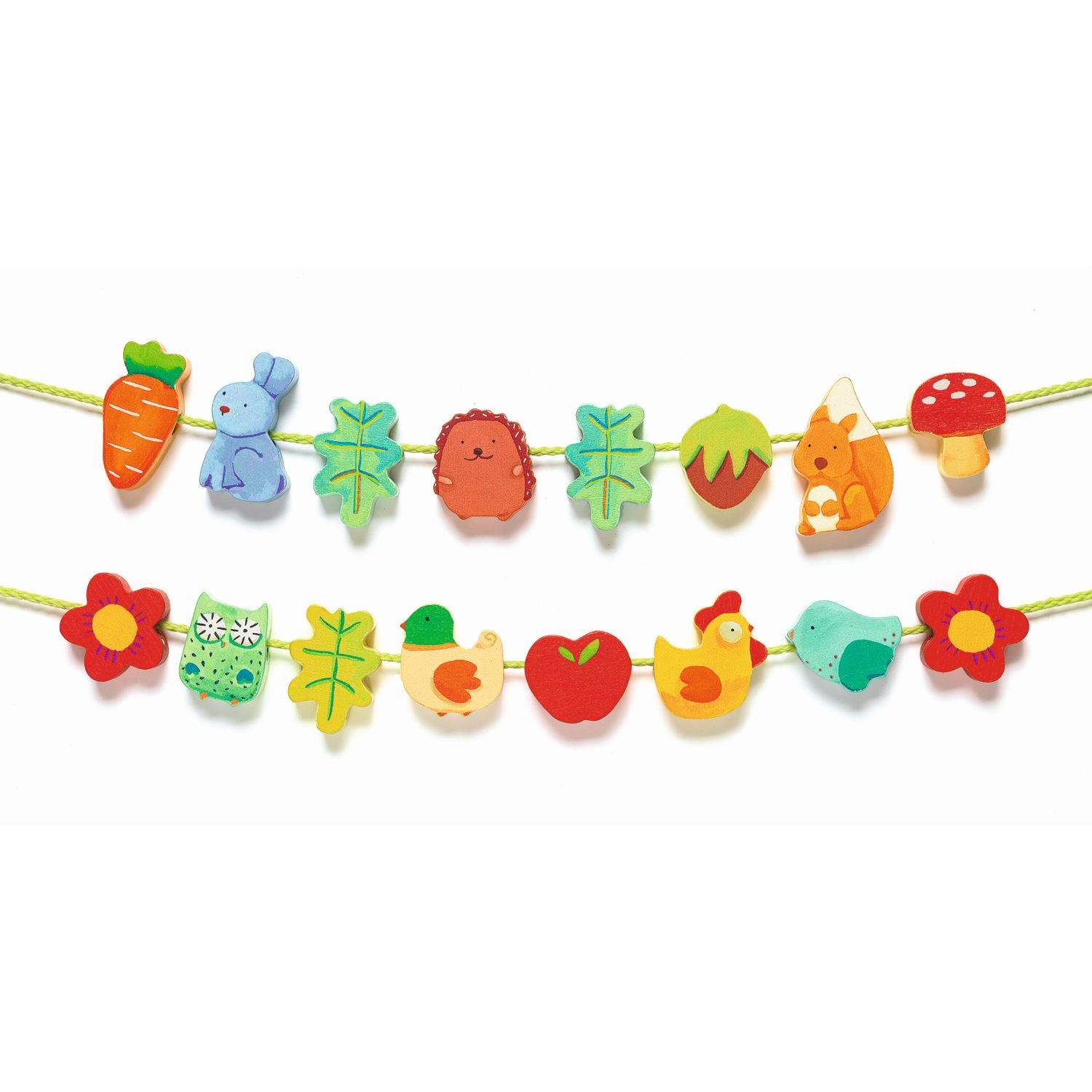 Mit den kunterbunten Lernspielzeug „Fädelkette Gartenspiel“ DJ06167 von Djeco entstehen wunderbare Kettern aus verschiedensten Motiven. Hier ist Kreativität, Fingerfertigkeit und Geduld gefragt.