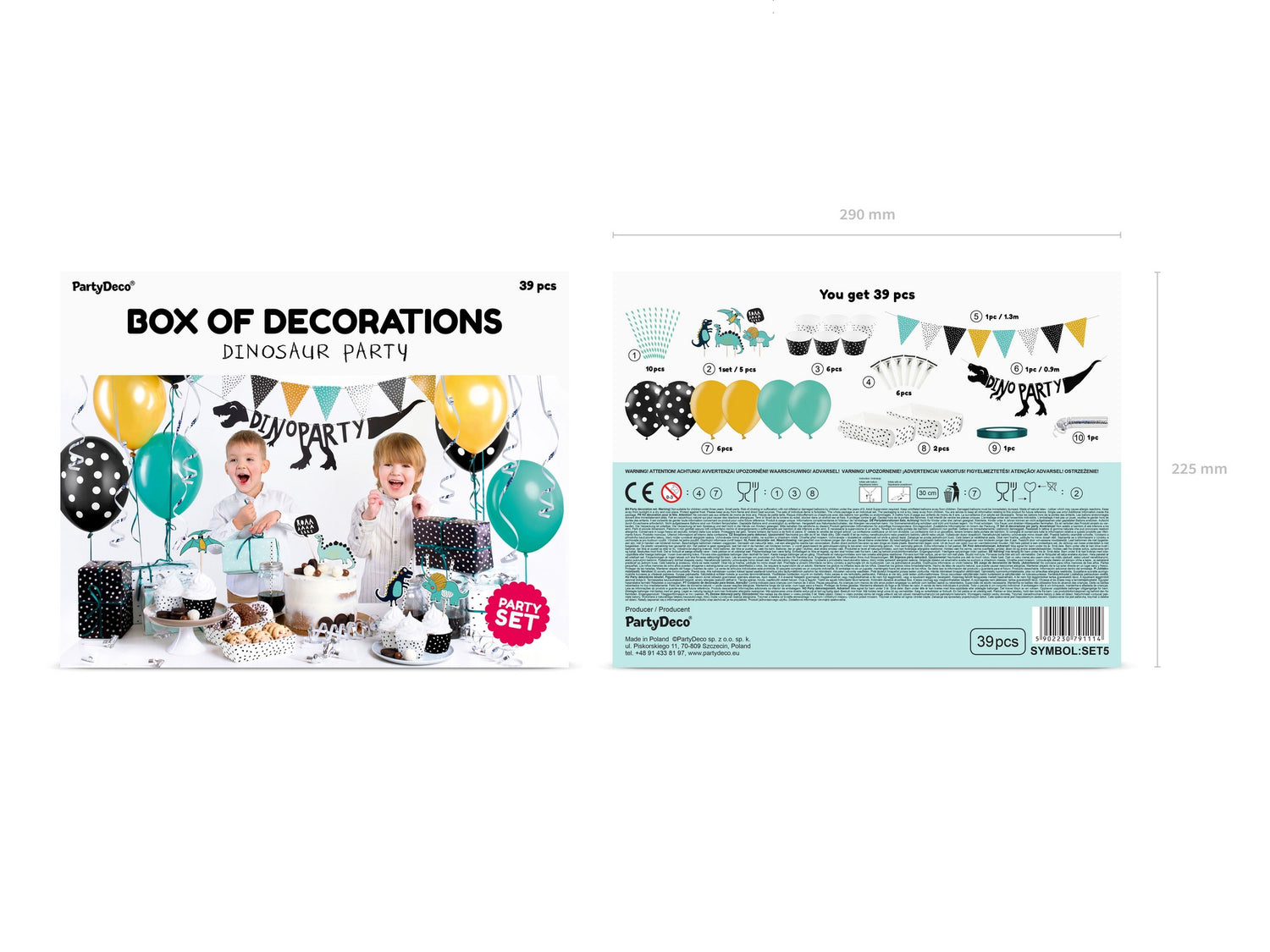 Die Deko- Accessoires von PartyDeco zaubern auf jedem Fest eine wundervolle Atmosphäre. Dieses Partydekorationsset beinhaltet alles, damit der Dinosaurier-Geburtstag zum absoluten Highlight wird und alle Gäste werden begeistert sein.