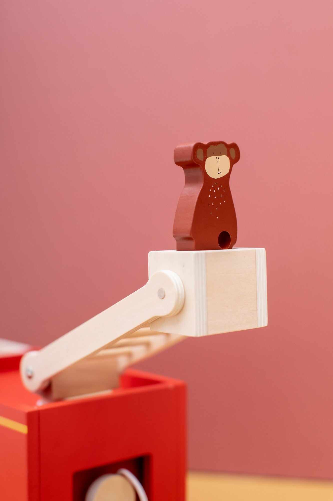Die Leiter von dem Trixie Feuerwehrauto ist beweglich und kann sich je nach Situation anpassen.
