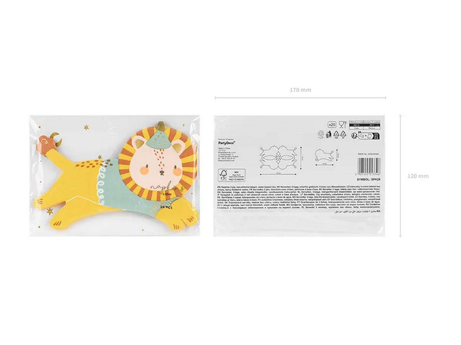 Jede Serviette ist in Form eines coolen Löwen in pastelligen Puder-Farben gestaltet, der deine Gäste beeindrucken wird.