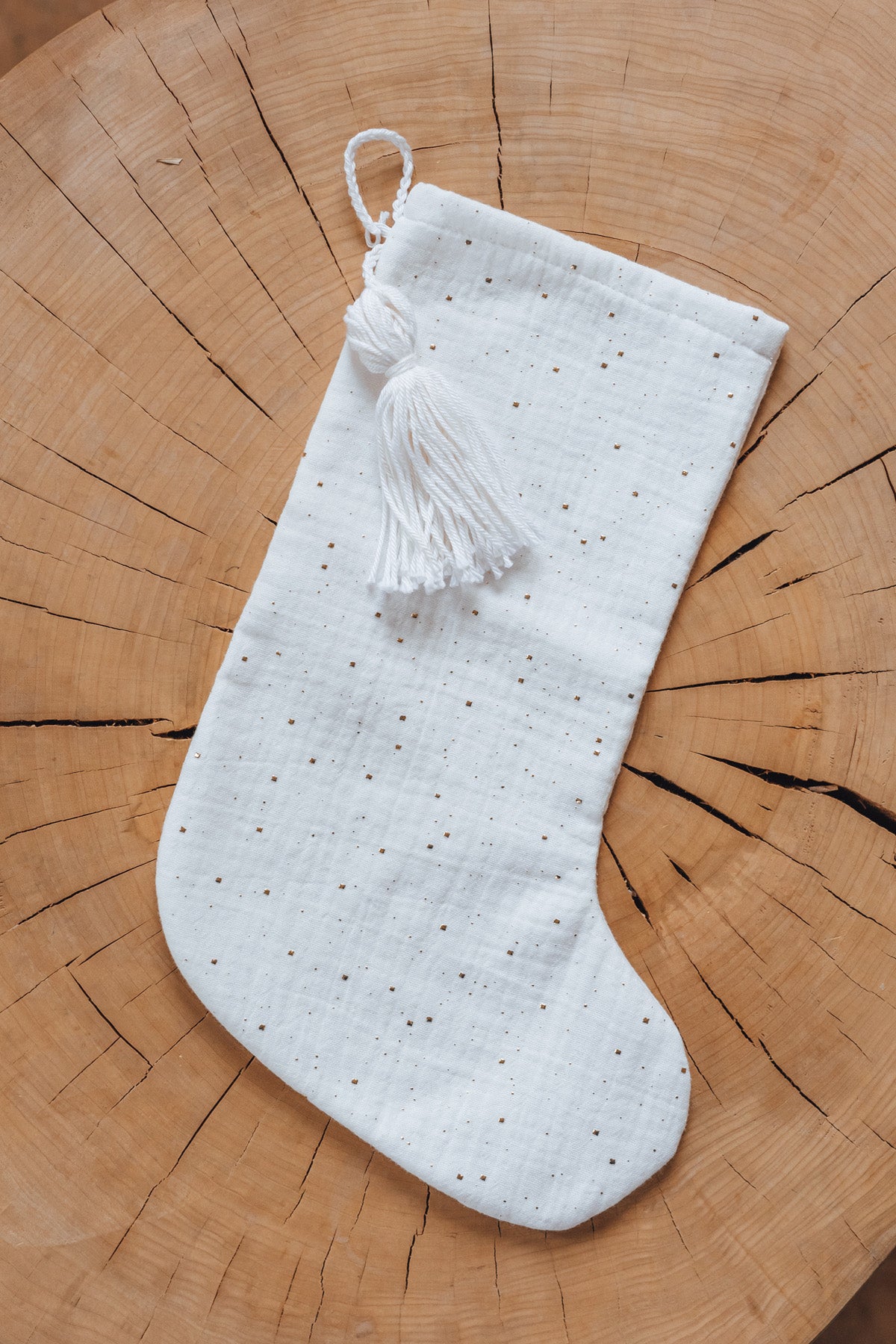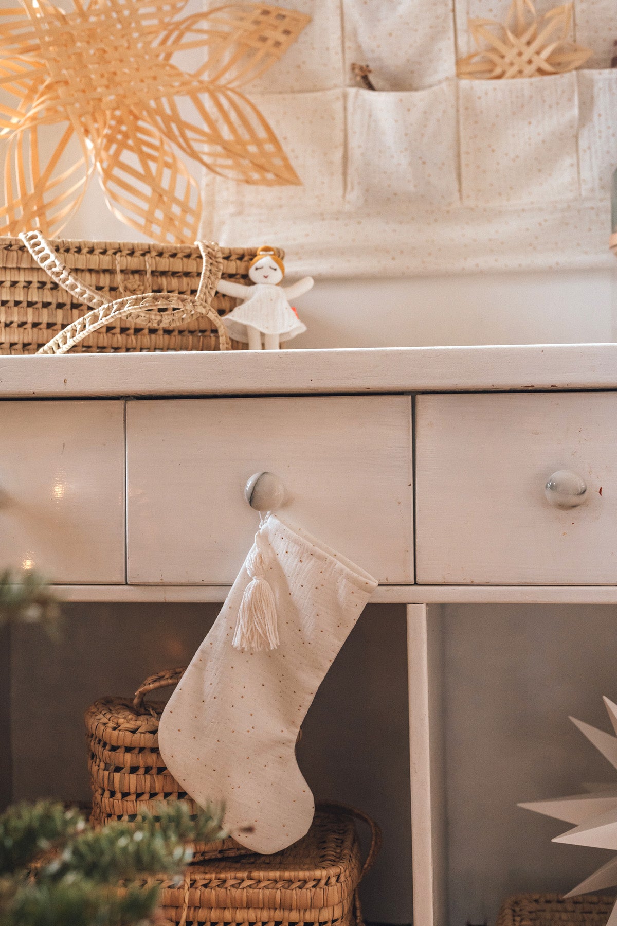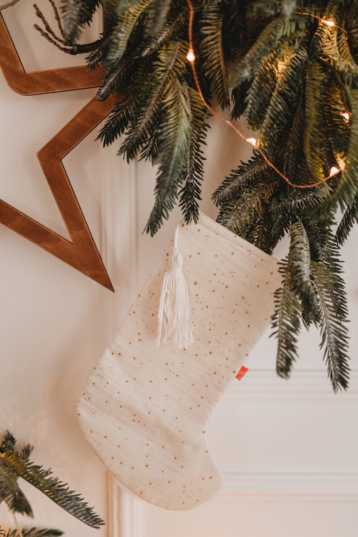 Der Nikolausstiefel Sparkling von Kikadu, ist ein besonders süßer Artikel in unserer Weihnachtskollektion. Er kann an Treppe, Türe, Baum, Haken oder am Kamin angebracht werden und eignet sich für Groß und Klein. Der Stiefel bietet viel Platz um ihn mit kleinen Geschenken oder Süßigkeiten zu befüllen. Er ist aus GOTS zertifizierter Bio-Baumwolle hergestellt. Maße: 39x19cm. Pflege: Handwäsche kalt.
