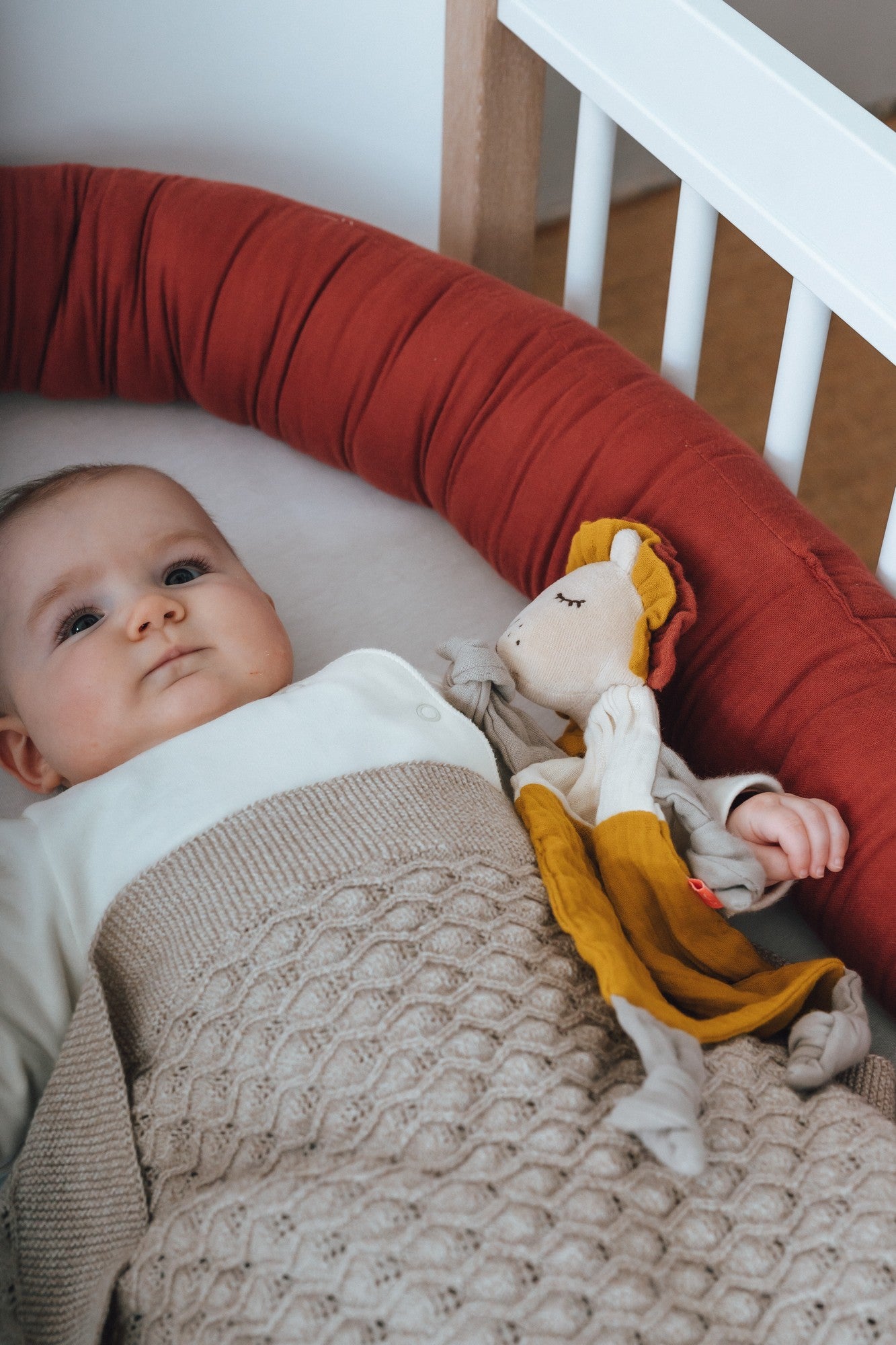 Der Löwe ist perfekt zum kuscheln und schmusen, ist aber auch ein besonders schönes Deko- Objekt im Kinderzimmer.