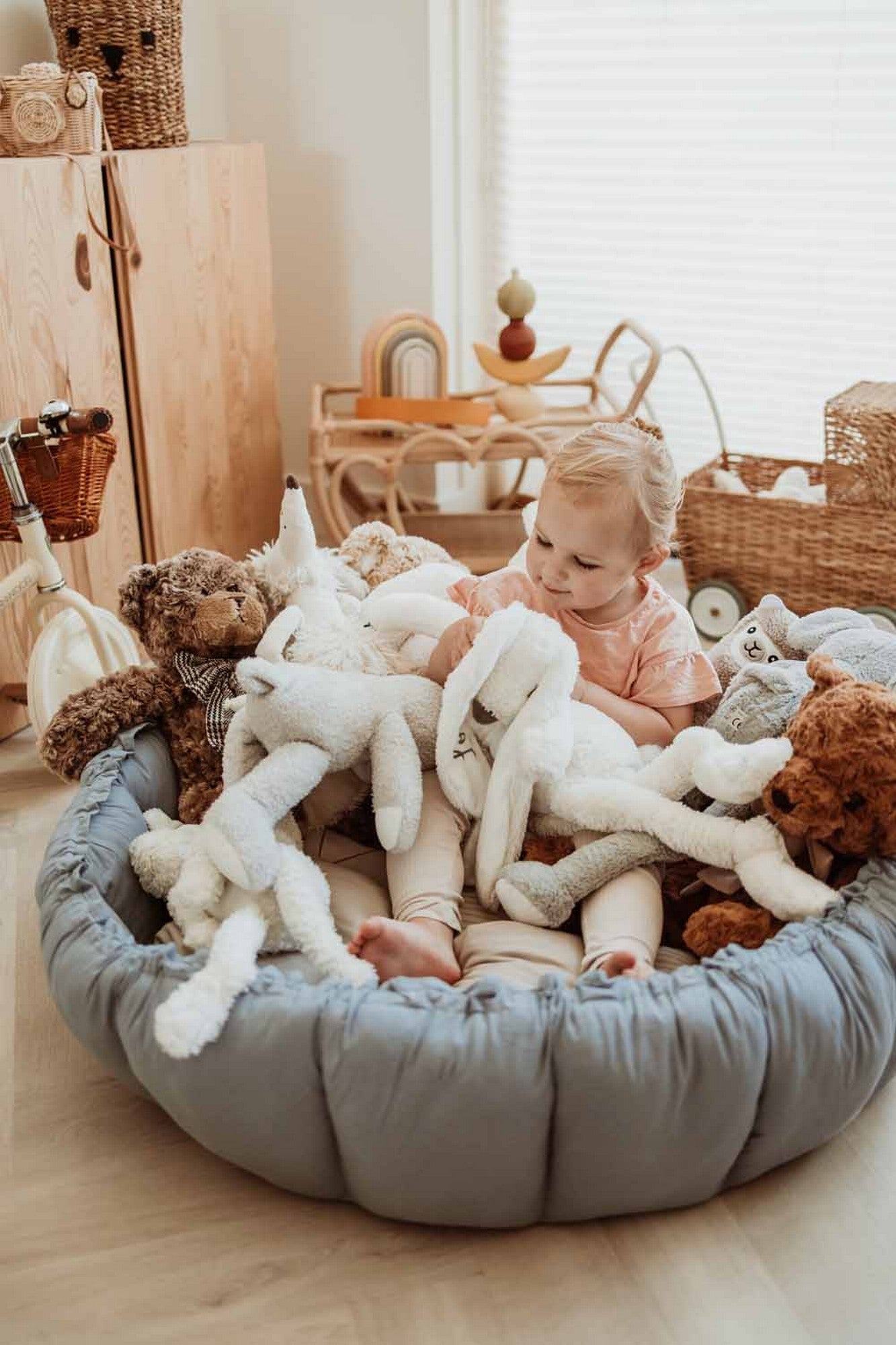 Doch damit nicht genug: Nach der Kuschelrunde dient das Bloom Babynest als cleverer Aufbewahrungskorb für Kuscheltiere, Schnuller & Co. So bleibt das Kinderzimmer immer ordentlich und charmant zugleich!