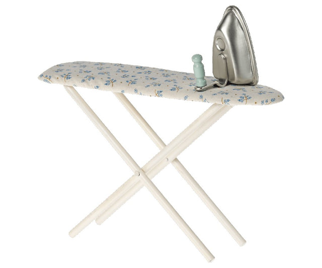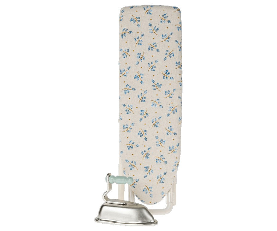 Puppenbügelbrett mit Bügeleisen aus Metall für die Puppen von Maileg. Mit dem Bügelbrett lassen sich tolle Rollenspiele mit Puppen spielen. Das Bügelbrett hat einen schönen Baumwollbezug mit Blumenprint und sieht einfach zuckersüß aus. Das ideale Geschenk für kleine Maileg-Freunde.