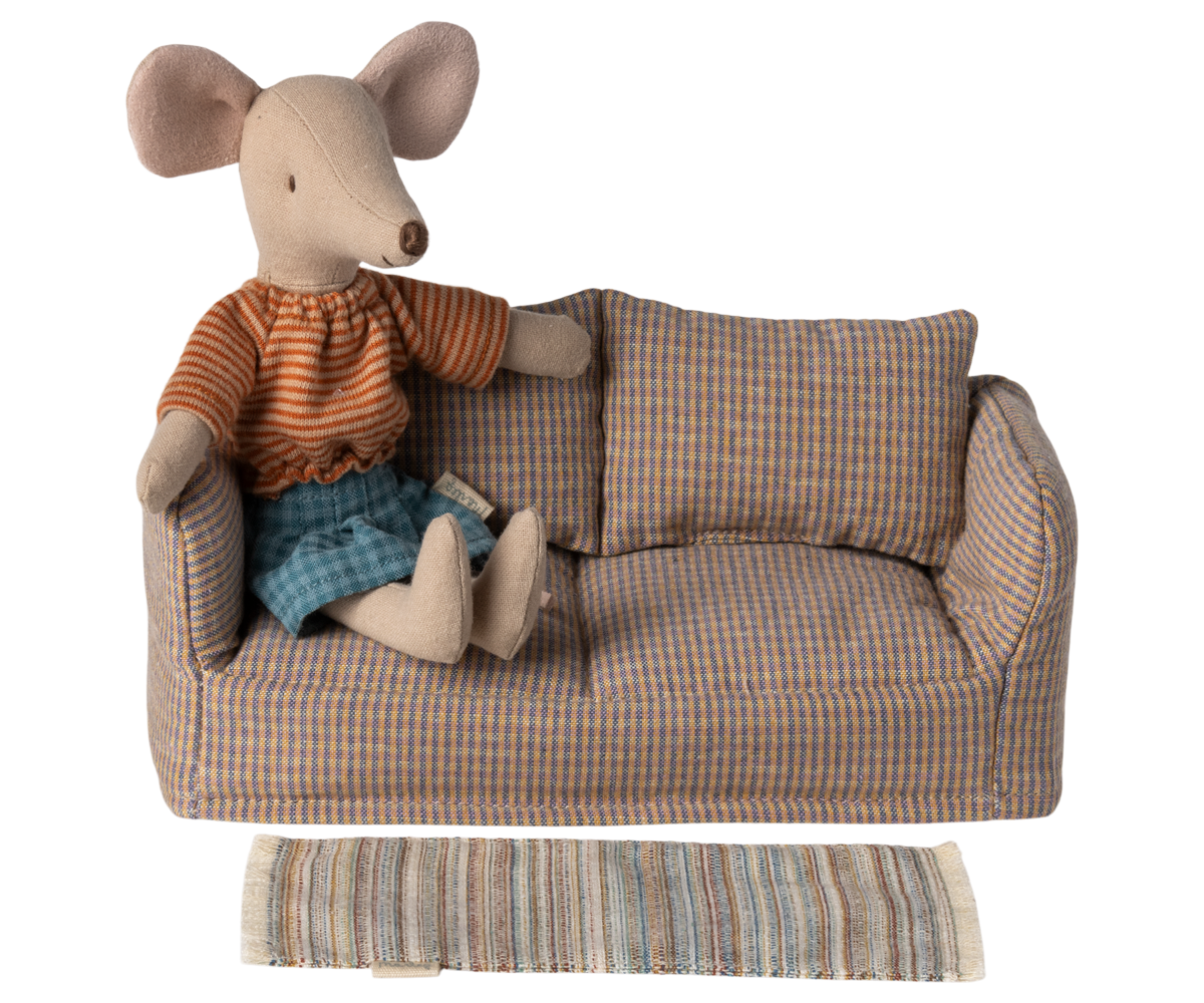 Der Maileg Teppich gestreift - groß ist ein vielseitiges Dekorationsstück, das in jedem Zuhause Verwendung finden kann.