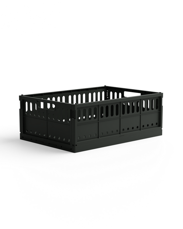 Die Faltbox Maxi ist die größte Größe der Made Crate- Boxen. Sie lässt sich zusammenklappen und platzsparend verstauen.