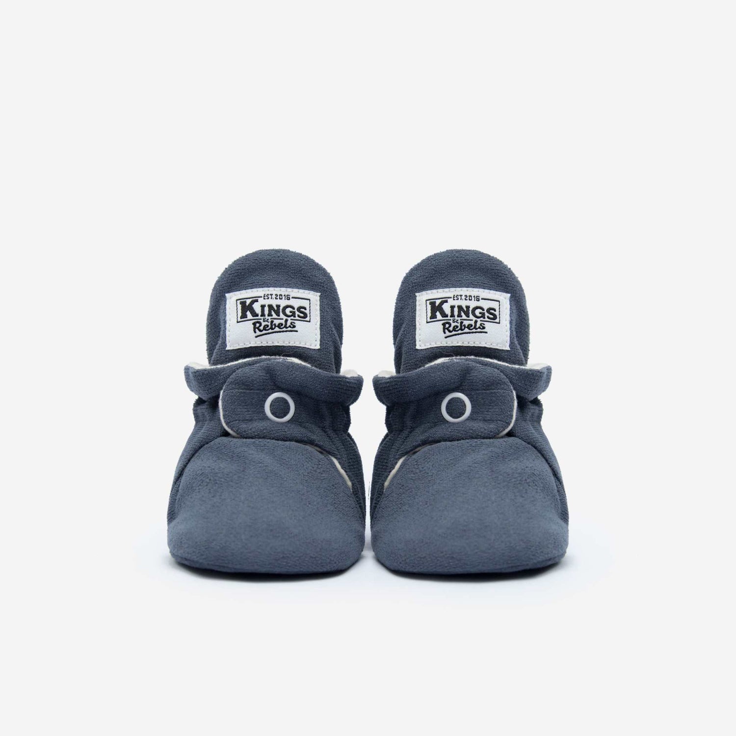 Die Kings & Rebels Baby Booties wurden mit einem einfachen und praktischen Druckknopf- Verschluss entworfen, was das Anziehen von strampelnden Babys in wenigen Sekunden ermöglicht. Der komplett um die Ferse verlaufende und über dem Knöchel sitzende, integrierte Gummizug verhindert auch bei sehr aktiven Babys das Herunterrutschen des Booties. Die Booties passen sich perfekt an die individuelle Form der Babyfüße an und schränken somit die natürliche Entwicklung der kleinen Babyfüße nicht ein. Alle Kings & Rebels Baby Booties werden in Handarbeit im eigenen Familienbetrieb hergestellt. ACHTUNG: Größe 12-24 Monate, Laufsohle mit Antirutsch- Noppen Größenübersicht: New Born (9 cm Länge) 3 Monate (10 cm Länge ) 6 Monate (11,5 cm Länge) 12 Monate (13 cm Länge) 18 Monate (14 cm Länge) 24 Monate (15 cm Länge) Farbe: Night Blue Innenmaterial: Fleece Außenmaterial: Veganes Kunstleder
