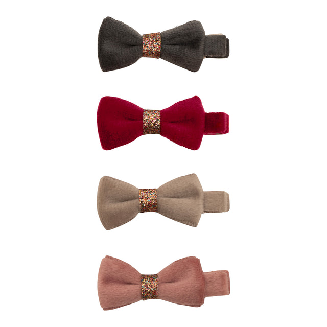 Mit vier eleganten Schleifen aus weichem Samt und glitzernder Mittelumwicklung ist dieses Set wie gemacht für besondere Anlässe – von der Weihnachtsfeier bis zum Familienfoto unterm Baum.
