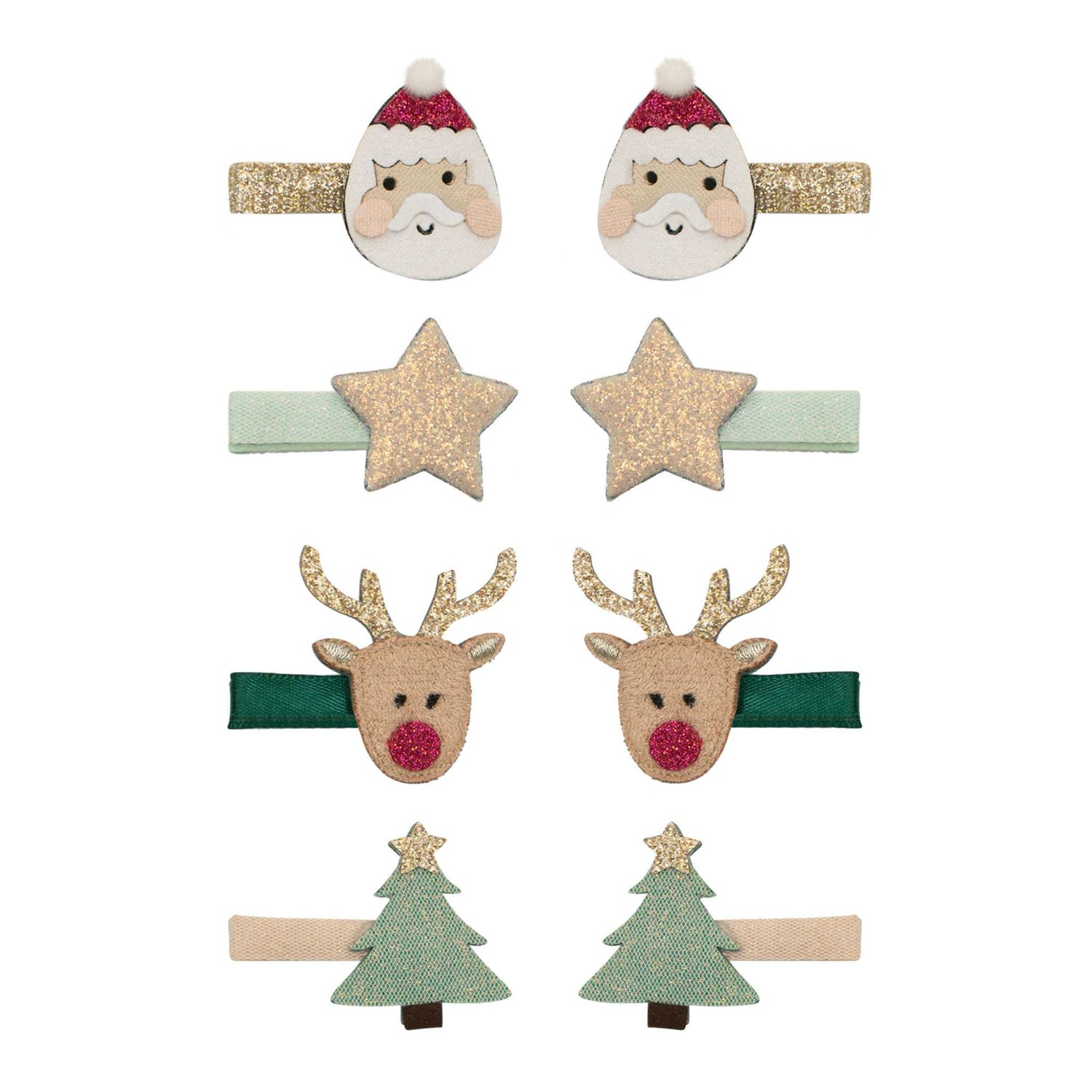 Acht winzige Clips von Mimi & Lula in einer festlich-fröhlichen Farbkombination aus Rot, Grün und Gold – einfach perfekt, um jeden Look weihnachtlich aufzupeppen!
