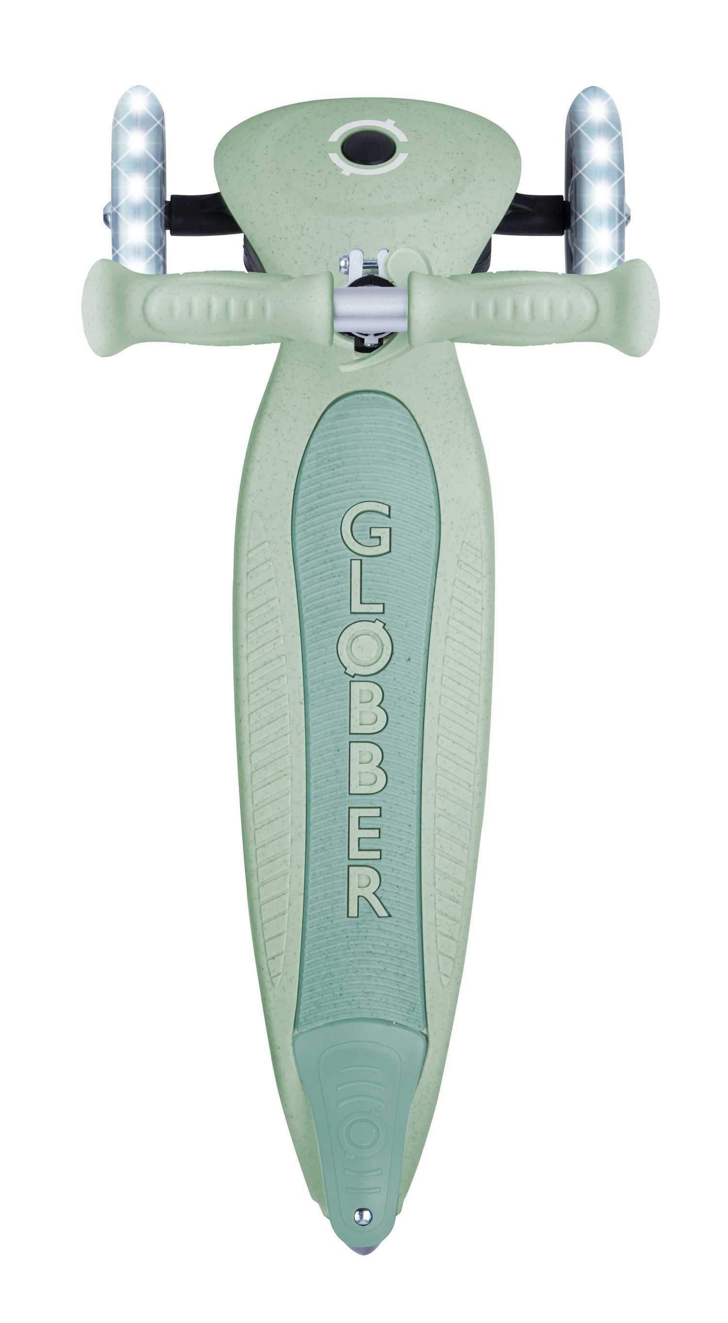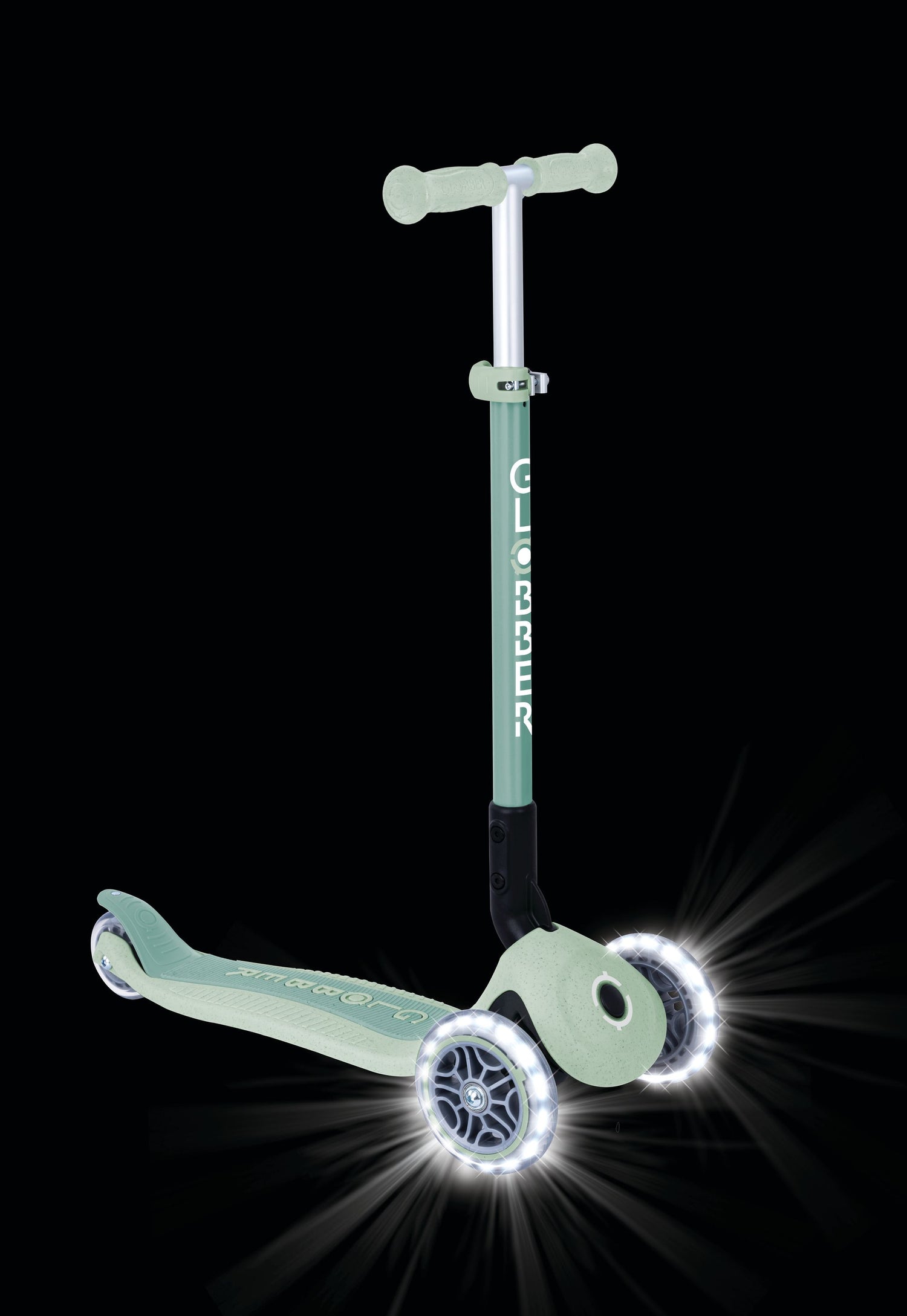 Der PRIMO FOLDABLE LIGHTS ECOLOGIC von Globber ist der umweltfreundliche 3-Rad-Scooter für Kinder ab 3 Jahren – aus 60 % recyceltem Kunststoff (GRS-zertifiziert) und biologisch abbaubarem Weizenstroh gefertigt. Mit seiner stabilen Konstruktion, dem breiten, rutschfesten Deck und der höhenverstellbaren Lenkstange bietet er sicheren Fahrkomfort über viele Jahre hinweg.