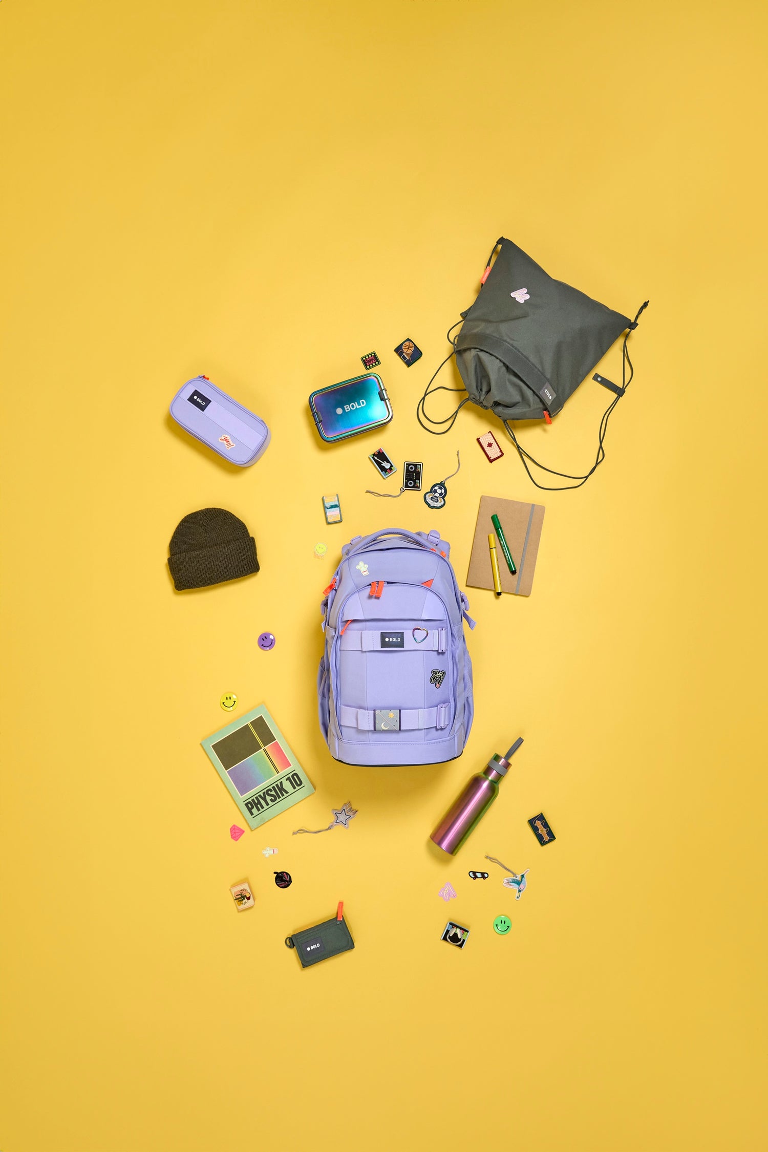 Der Turnbeutel Bold kann mühelos am Bold Rucksack befestigt werden; ein Reflektor auf der Fronttasche sorgt für bessere Sichtbarkeit in der Dämmerung.