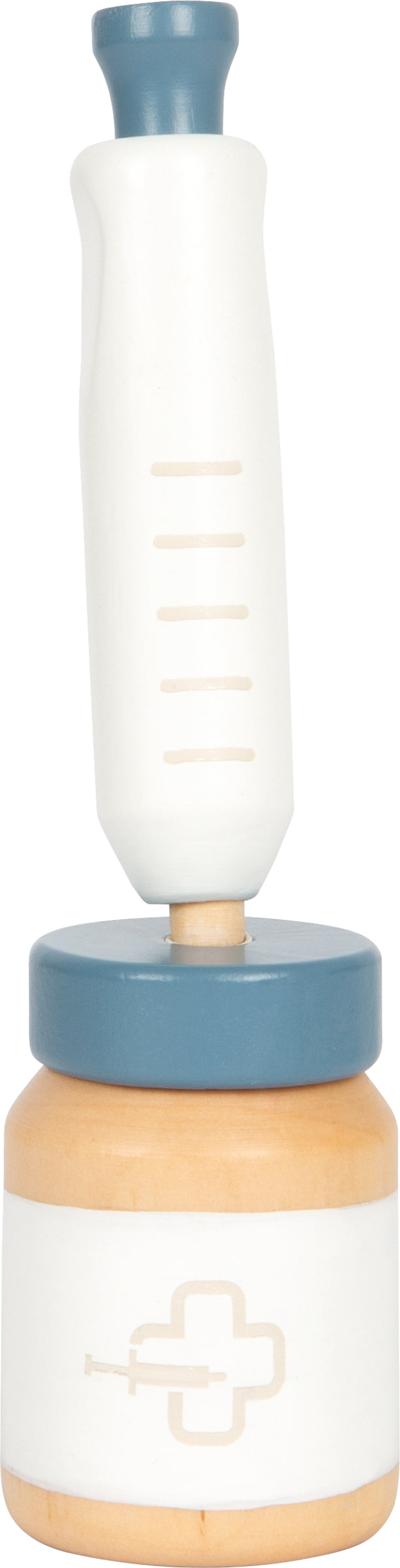 Pinzette, Verband mit Klettverschluss sowie Medizinfläschchen und Spritze mit Drückmechanismus und beweglicher Spitze ergänzen das umfangreiche Set und ermöglichen es, realitätsnahe Tierarzt-Situationen nachzuspielen.
