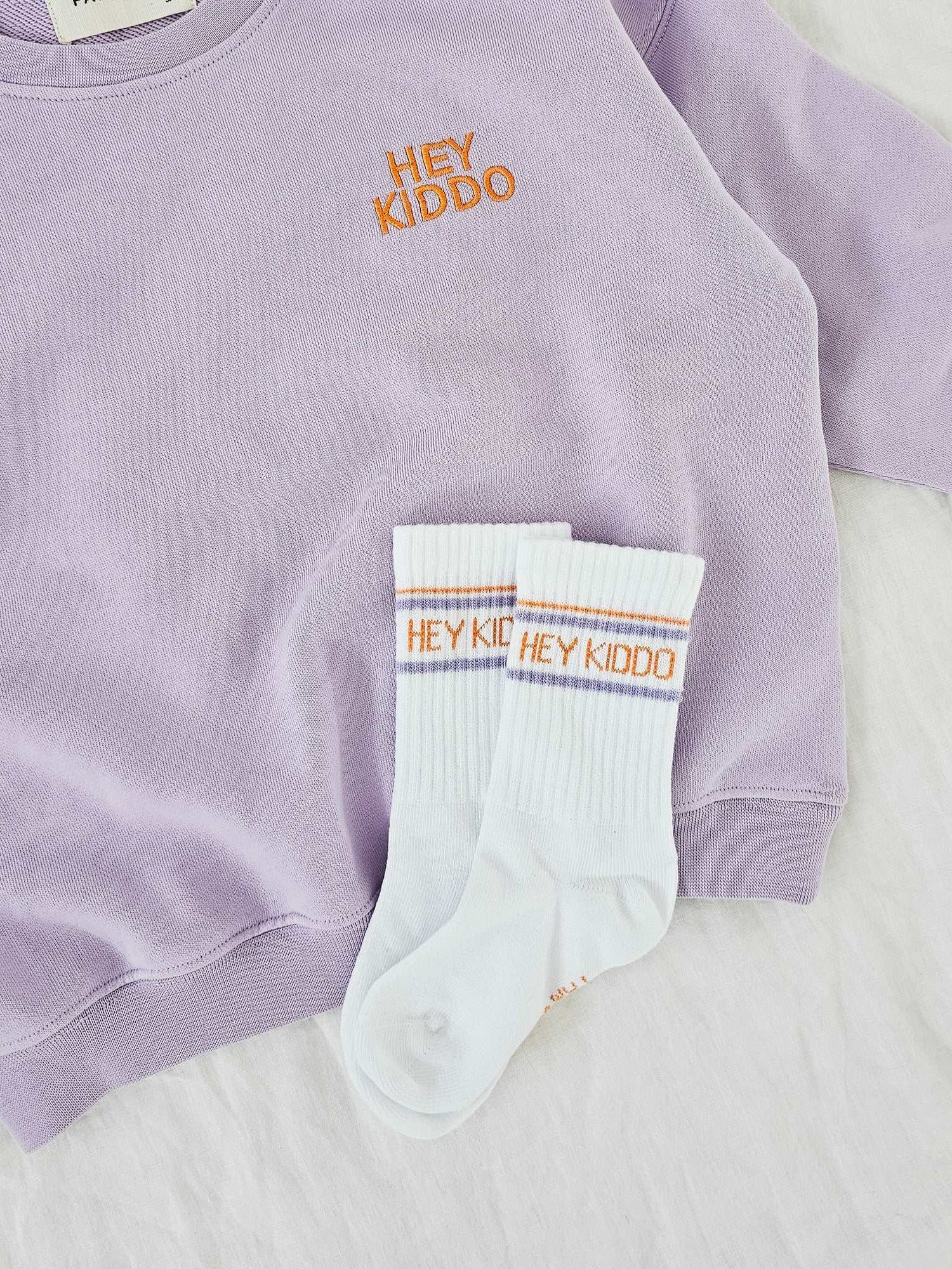 Die süßen HEY... Socken von Fam Vibes, gibt es jetzt auch für die "größeren Kleinen" mit eingewebtem HEY KIDDO und coolen Streifen. Modell: KI1502PRT Größe: 98/104 Farbe: milk | lavender | orange Material: 80% Baumwolle, 18% Polyamid, 2% Elasthan Pflege: 30°Schonwaschgang, auf links waschen und bügeln, nicht Trockner geeignet, mit gleichen oder ähnlichen Farben waschen ACHTUNG: Das abgebildete Sweatshirt ist NICHT im Lieferumfang enthalten! Das Shirt finden Sie separat in unserem Onlineshop.