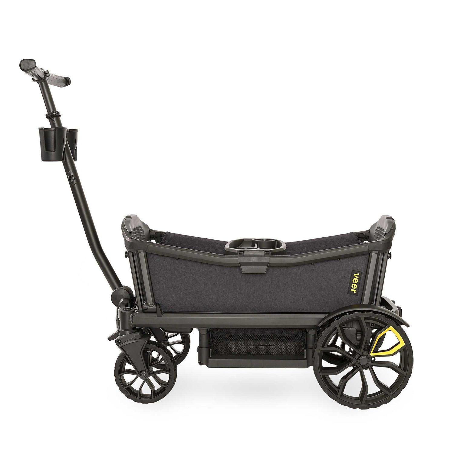 Mit einem Gewicht von 14,7 kg ist der VEER Cruiser leicht zu handhaben. Er lässt sich mit nur einer Hand zusammenklappen und kann sowohl geschoben, gezogen als auch seitlich bewegt werden. Zwei Becherhalter und ein Esstisch sind im Lieferumfang enthalten, um für zusätzlichen Komfort zu sorgen.