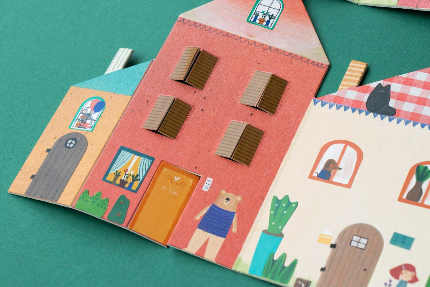 Baue und dekoriere Häuser mit dem Spiel Chez Moi von Londji. Das Spiel enthält 3 Häuserstraßen, die lustig mit den 185 Aufklebern beklebt werden können. Mach Dir Deine Stadt, so wie du sie möchtest!
