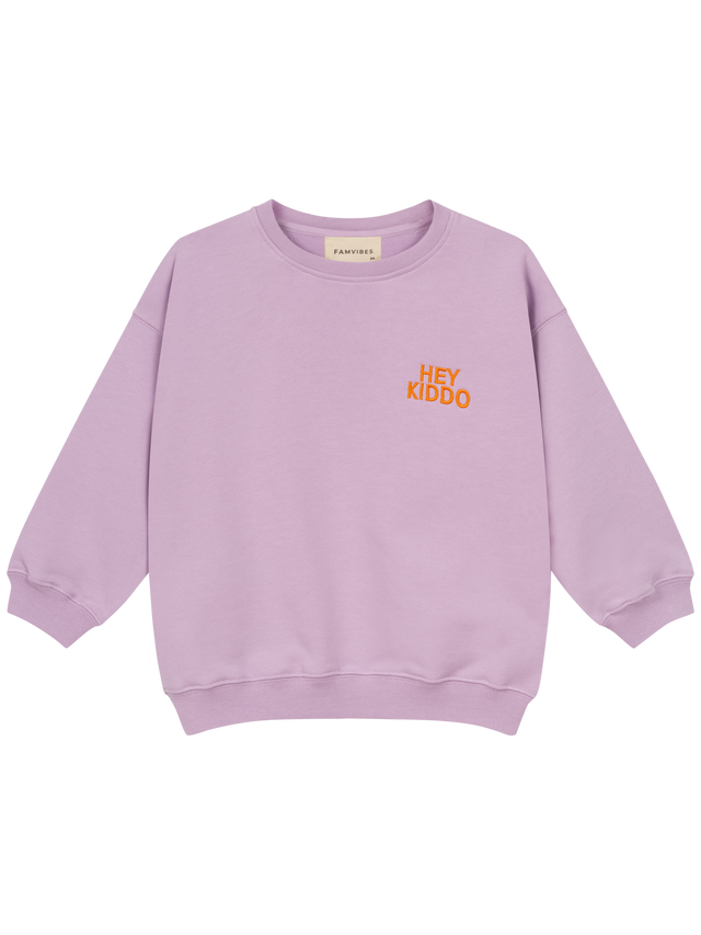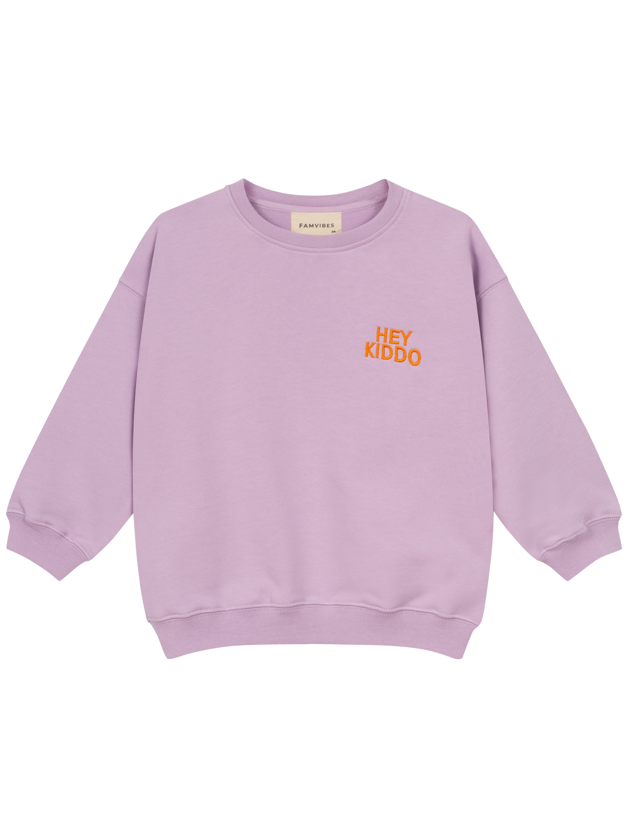 Das coole Sweatshirt von Fam Vibes, mit hochwertigem HEY KIDDO Stick, gibt es jetzt auch für die größeren Kinder.