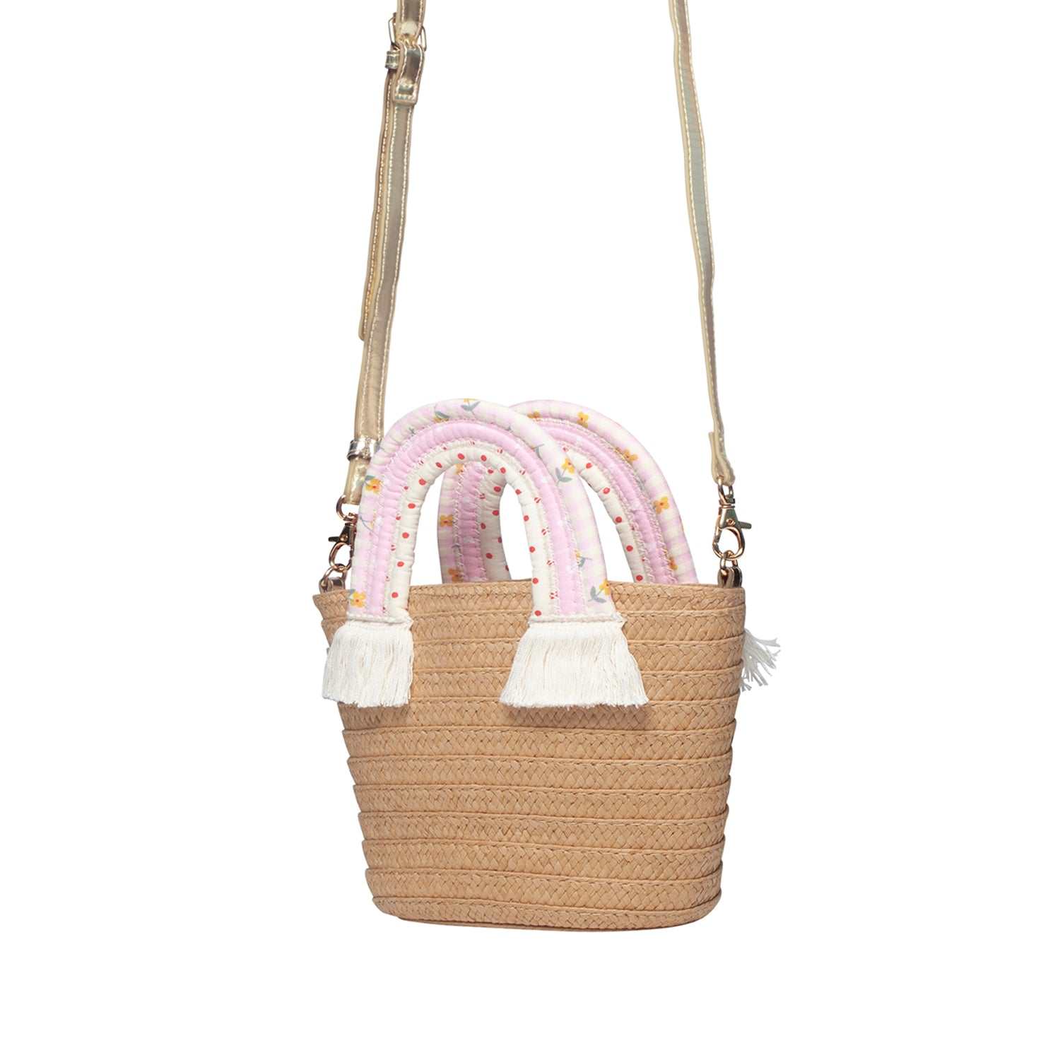 Die wunderschöne Tasche von Rockahula ist ein absoluter Hingucker. Die Korbtasche hat ein rot gepunktetes Innenfutter und einen weichen, regenbogenfarbenen Tragegriff. Der Magnetverschluss sorgt dafür, dass nichts rausfällt ; der goldene Umhänge Riemen ist abnehmbar. Die Korbtasche lässt sich toll kombinieren und ist ein schönes Accessoires für das ganze Jahr.