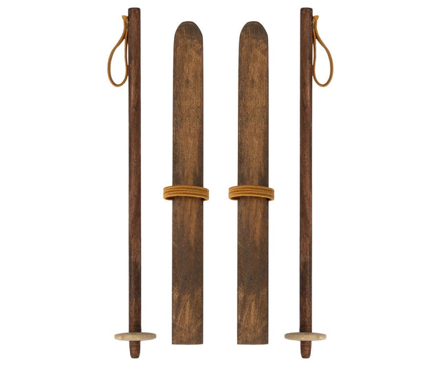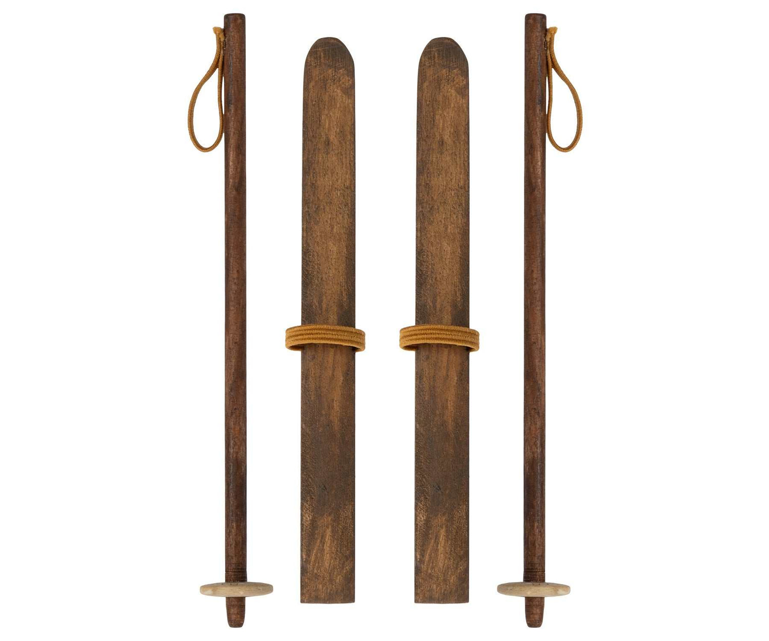 Die Ski und Skistöcke in Braun von Maileg sind liebevoll von Hand gefertigt und verfügen über ein nostalgisches Design.