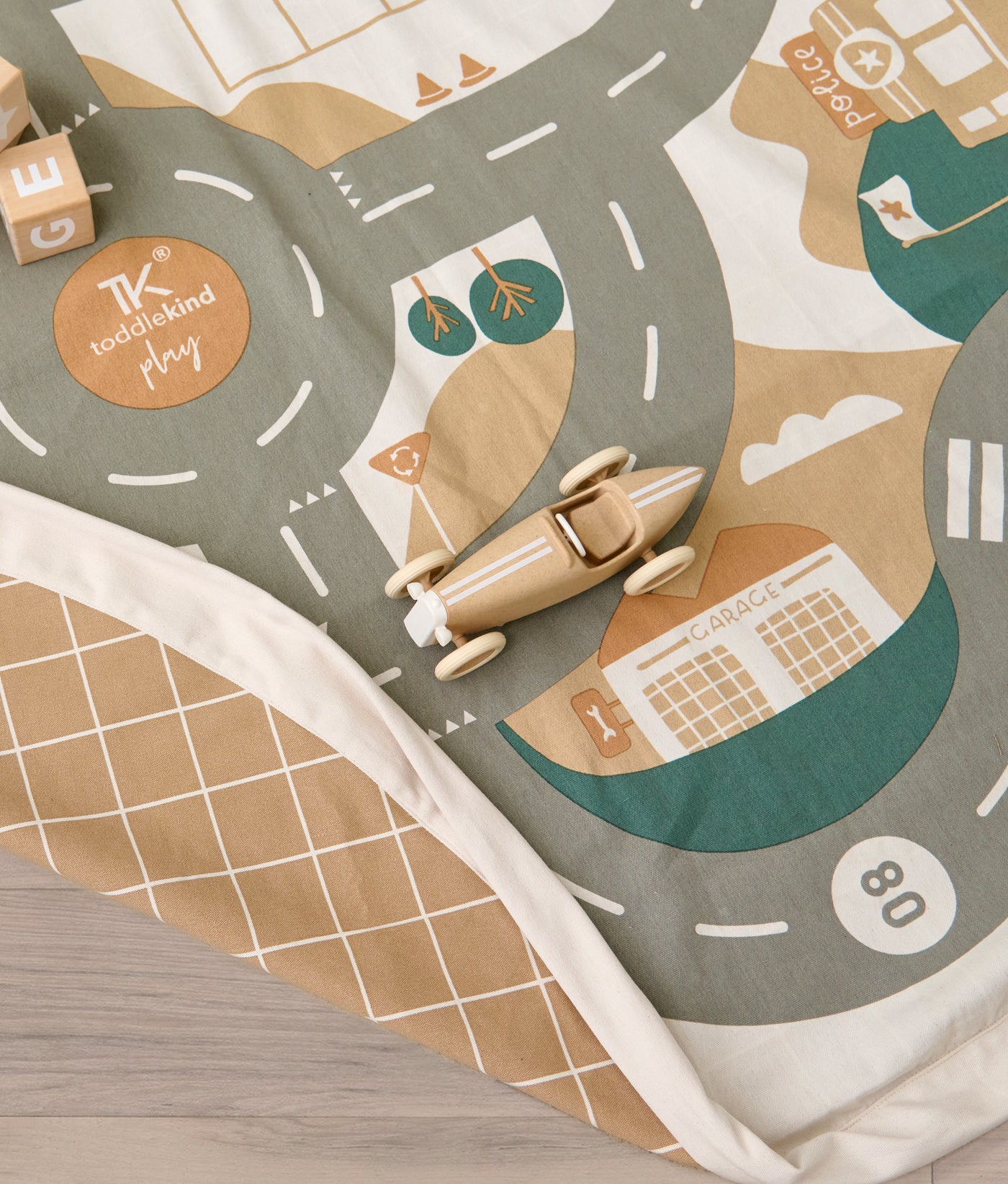 Schaffen Sie Ordnung in Ihrem Zuhause und inspirieren Sie spielerische Vorstellungskraft mit der transformierenden 2-in-1-Spielmatte und Spielsack von Toddlekind.