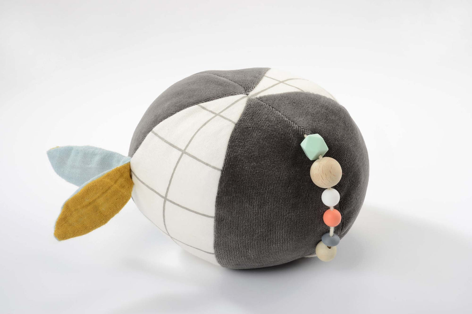 Der verspielte Panda in einem sanften Farbenmix aus einem dunkel grau und weiß hat viele Eigenschaften, die die Fein- und Grobmotorik anregen.