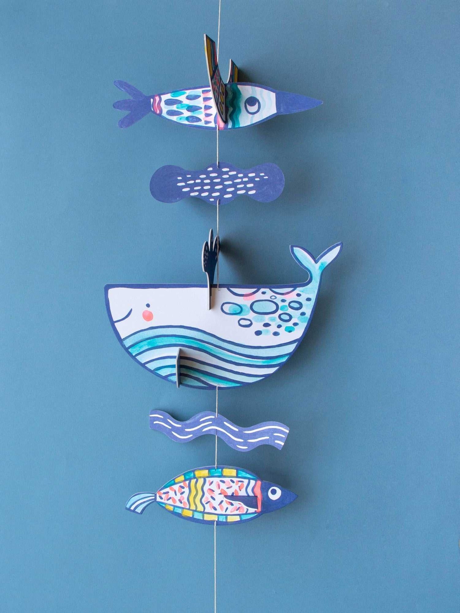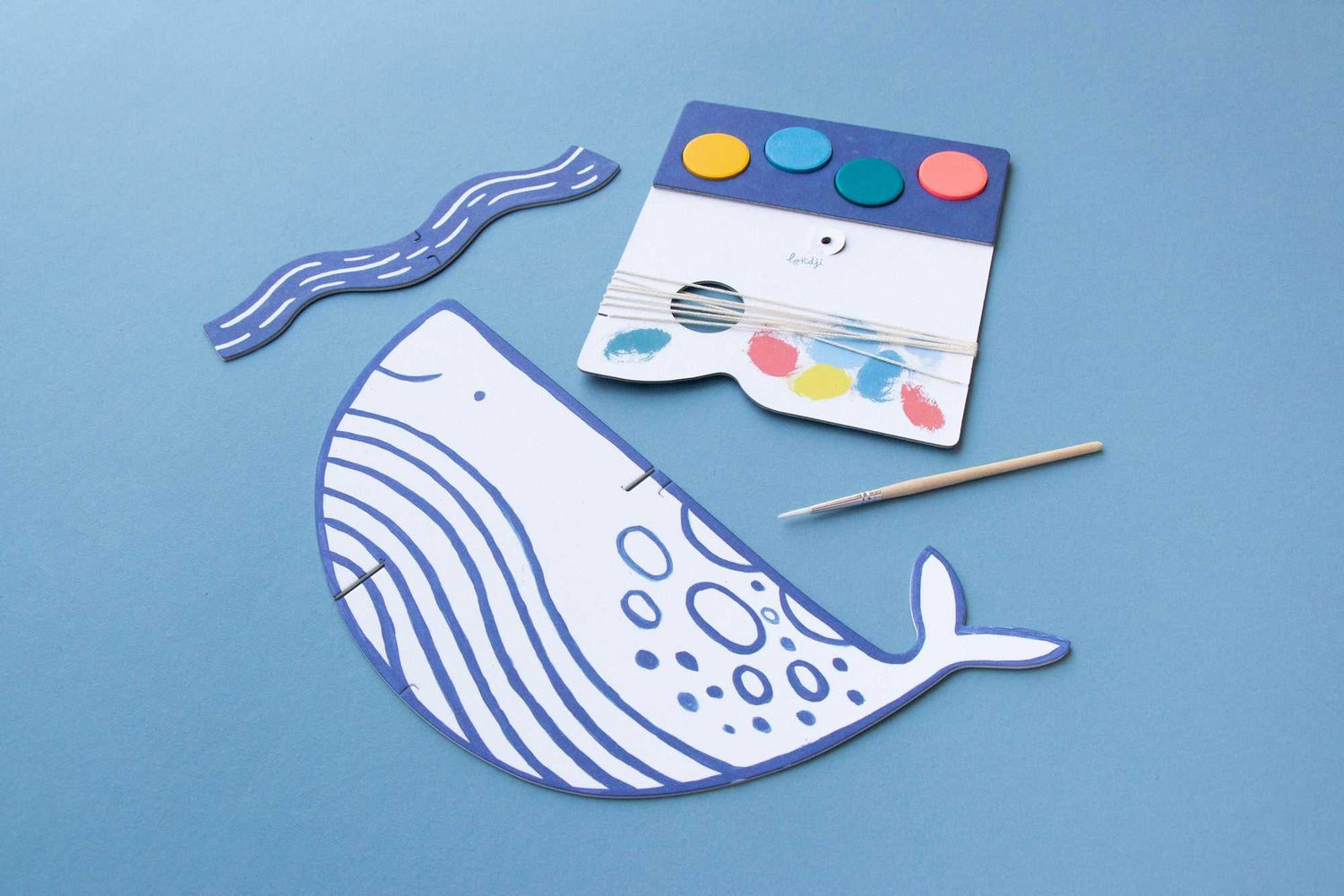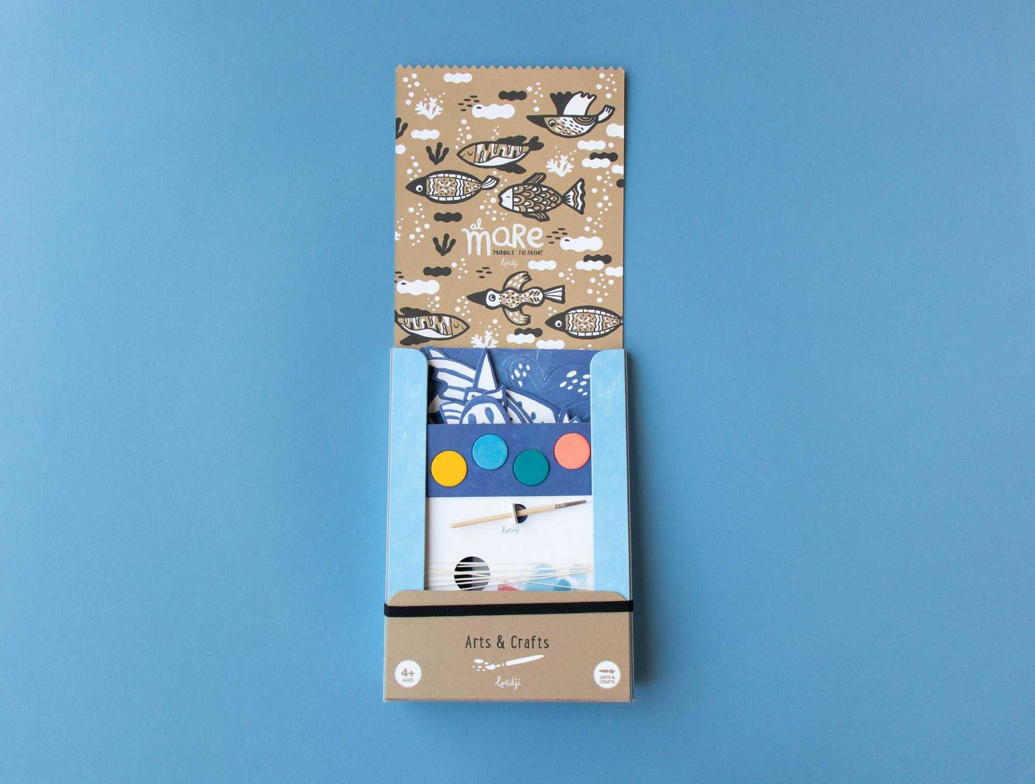Baue und bemale Dein eigenes Meerestiere-Mobile mit dem Bastelset Al Mare von Londji. Das innovative Bastelset wird mit einem kleinen Farbkasten mit Pinsel, einem Mobile, welches noch bemalt und zusammengebaut werden soll und viel Spaß geliefert.