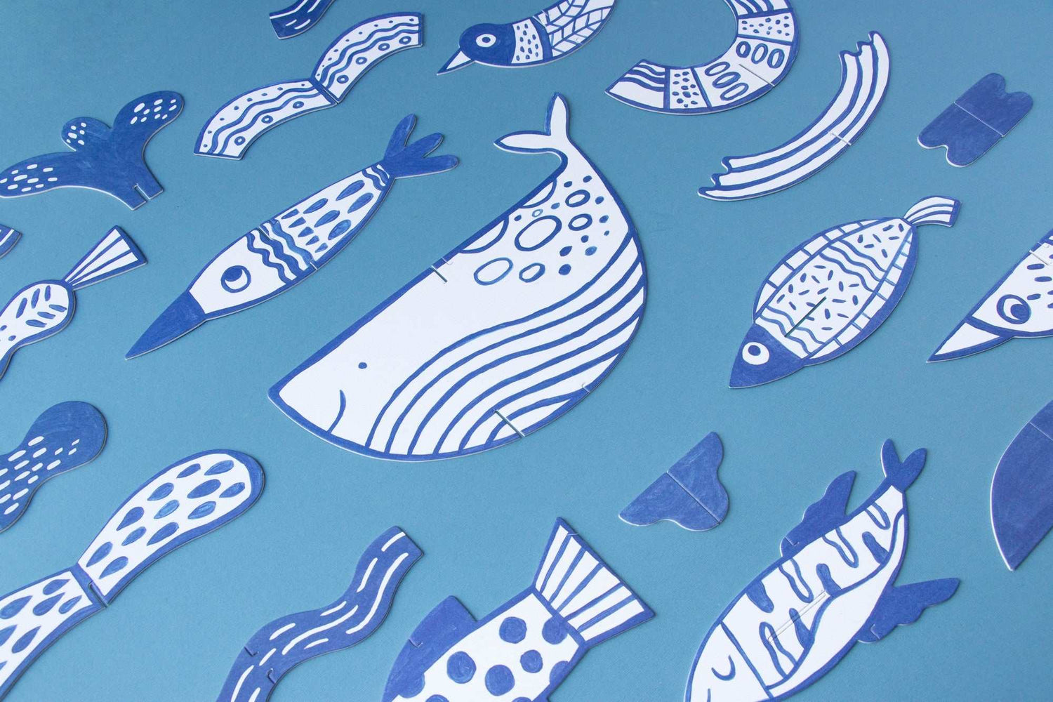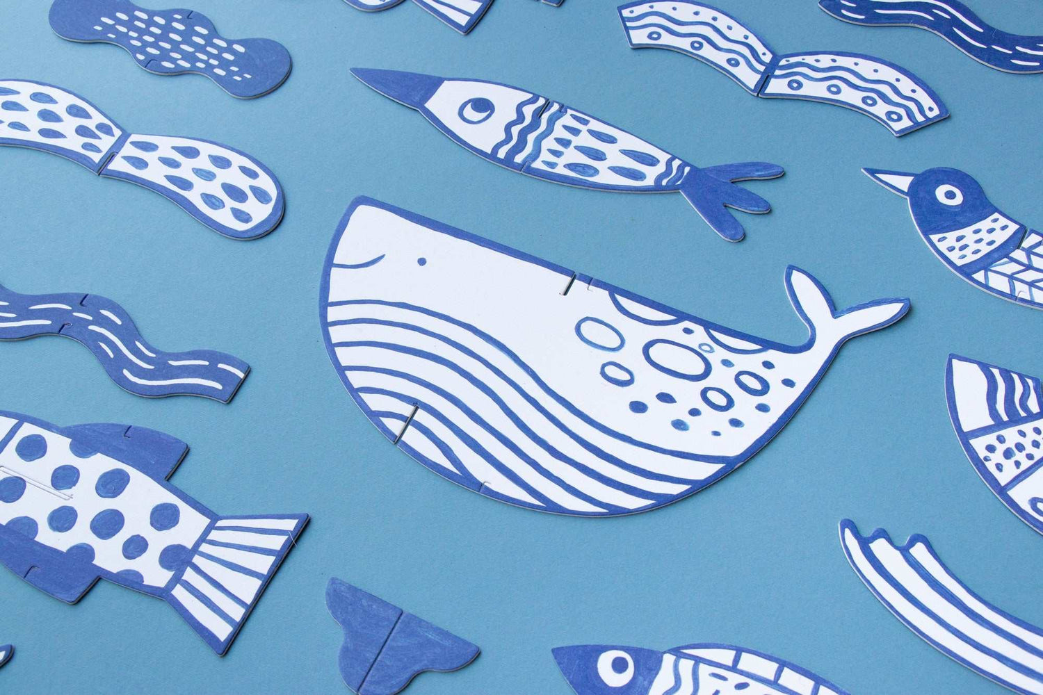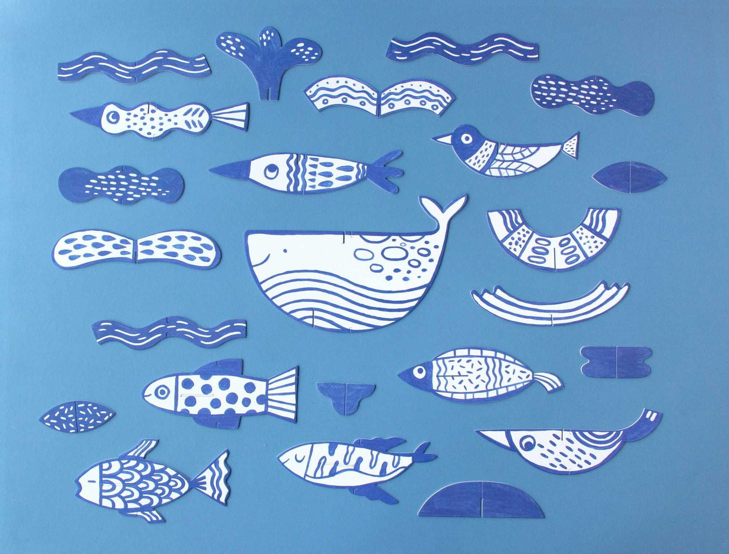 Inhalt: Faden 2 Meter lang, 4 x Wasserfarben, 1 x Pinsel, 9 x Meerestiere Teile, 5 x Wellen Teile