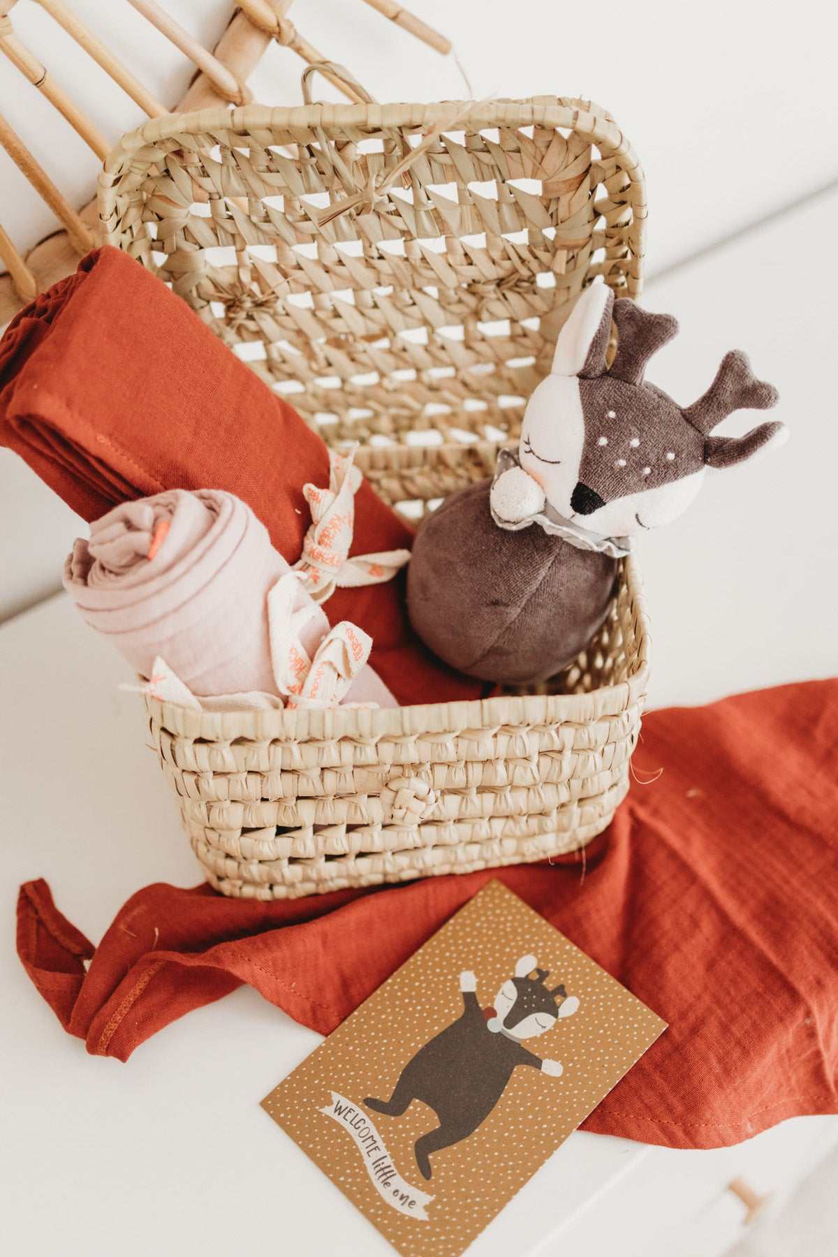 Die sanften Farben und die verspielten und bunten Details aus verschiedenen ökologischen Materialien, wie zum Beispiel Pompon und Rüschenkragen, wecken die haptische Neugier ihres Kindes.