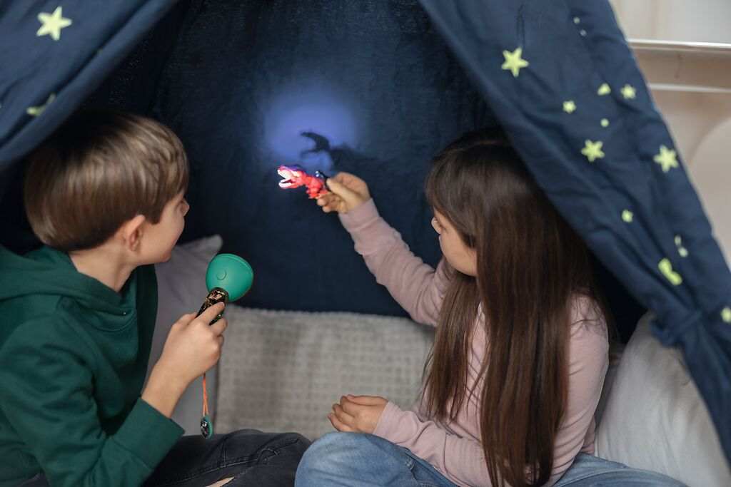 Die Dino-Taschenlampe ist besonders robust und wurde speziell für kleine Kinderhände konzipiert. Die griffige, gummierte Oberfläche sorgt für einen sicheren Halt. Zudem verfügt die Taschenlampe über eine Handschlaufe und einen Dekoanhänger im coolen Dino-Design, was sie zu einem echten Hingucker macht.