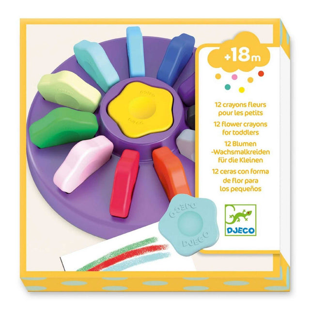 Die Farben: 12 Blumen-Wachsmalkreiden von Djeco sind die perfekte Wahl für die Kleinsten ab 18 Monaten, um kreative Zeichnungen und Ausmalbilder zu erstellen.