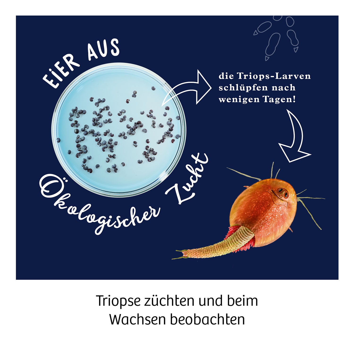 Mit diesem Starter Set können kleine Forscher echte Urzeitkrebse züchten! Der Kosmos Experimentierkasten liefert alles, was Kinder für die Triops-Zucht und Pflege brauchen. Von der Vorbereitung des Aufzuchtbeckens über das Füttern bis zum Heranzüchten der nächsten Generationen – die bebilderte Anleitung erklärt in einfachen Schritten, wie die Aufzucht gelingt. Die Triopse schlüpfen bereits nach wenigen Tagen. Sind sie alt genug, dürfen sie den abgetrennten Aufzuchtbereich verlassen und das Becken erkunden. Welches Futter werden sie wohl am liebsten mögen? Kinder zwischen 8 und 14 Jahren lernen, mit den Tieren verantwortungsvoll umzugehen und erfahren, mit welchem spannenden Trick die Urzeitkrebse aus der Zeit der Dinosaurier bis heute überlebt haben! Ein tolles Geschenk und Mitbringsel für kleine Entdecker. Inhalt: Triops-Eier, Triops-Futter, Sand, Kalksteine, Becken mit Aufzuchtbereich, Abtrenn-Tor, Thermometer, Schlauch, Spritze, Holzspatel, Anleitung Zusätzlich wird benötigt: geeignetes stilles Mineralwasser oder destilliertes Wasser, Schreibtischlampe oder andere wärmende Lichtquelle, Natron Modell: 637231 Alter: ab 8 Jahren Maße: 295x200x68mm (LxBxH) ACHTUNG! Für Kinder unter 3 Jahren nicht geeignet. Erstickungsgefahr, da kleine Teile verschluckt oder eingeatmet werden können. Strangulationsgefahr, falls lange Schnüre um den Hals gelegt werden.