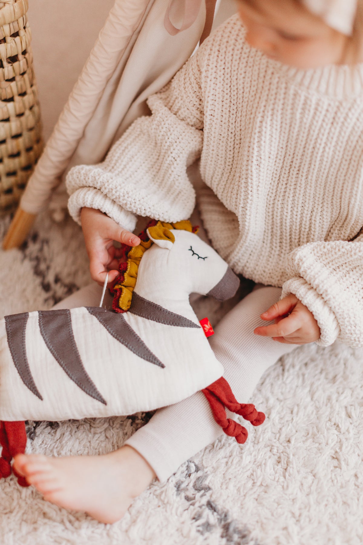 Der Körper des Zebras ist mit einem Reisverschluss versehen, so kann dann dein Kind kleine Dinge darin verstecken oder sie immer wieder rein und rausstecken.
