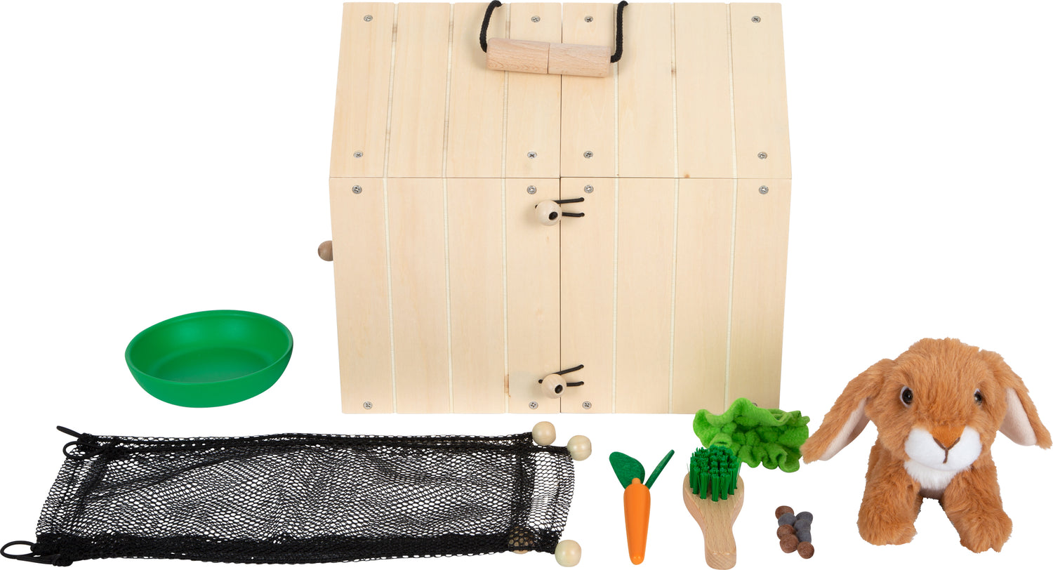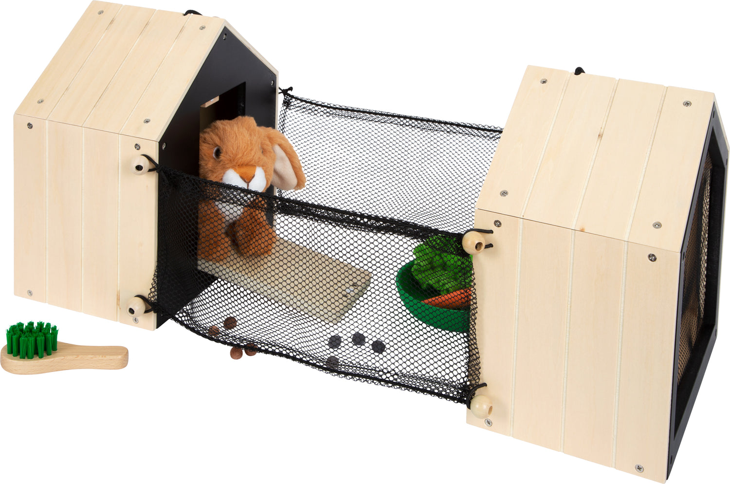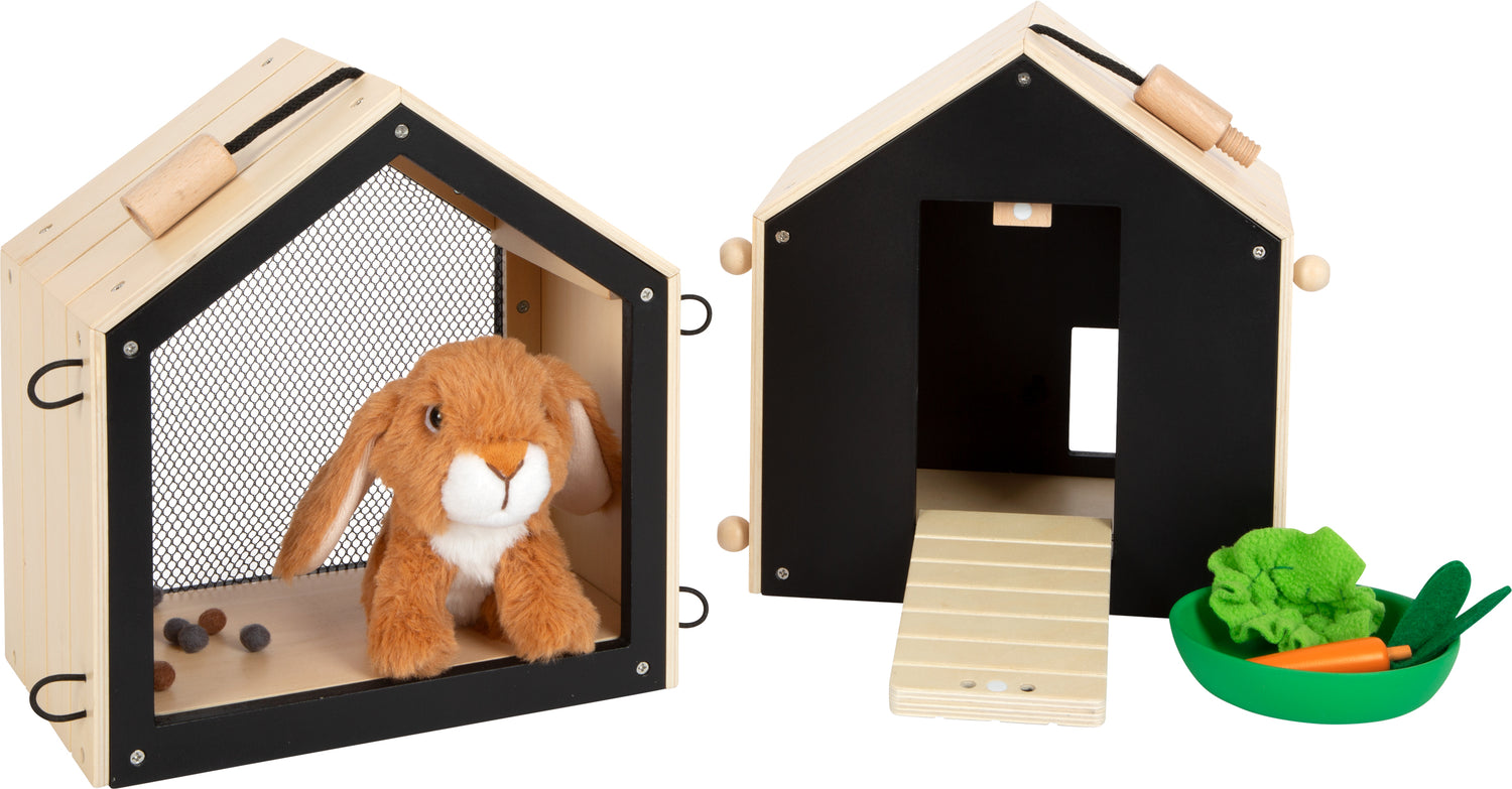 Wenn es kein echtes Haustier sein kann, dann ist dieser Hasenstall fürs kindliche Rollenspiel die perfekte Alternative, denn Kinder trainieren bei der Tierpflege wichtige sozial-emotionale Kompetenzen.