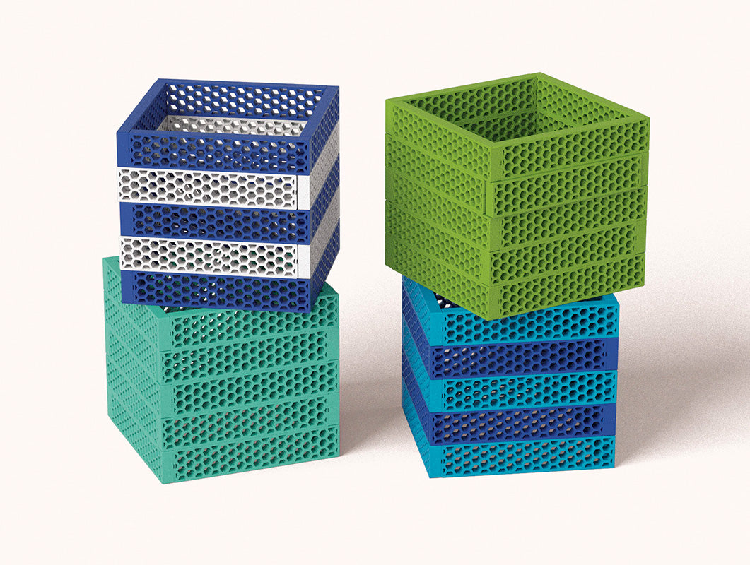 Durch die vielfältigen Farben wie Blau, Grün, Türkis, Marineblau und Weiß bieten die Bioblo Bausteine unendlich viele Gestaltungsmöglichkeiten.