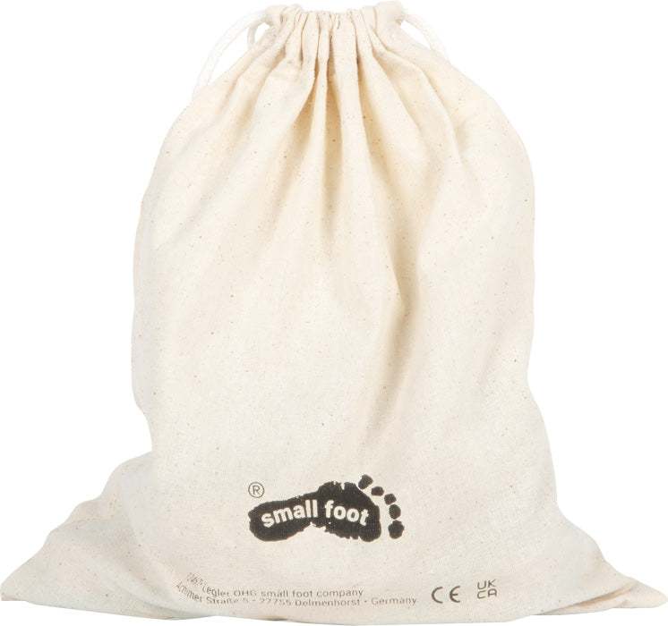Alle Teile finden nach dem Spielen Platz im Baumwoll-Aufbewahrungsbeutel.